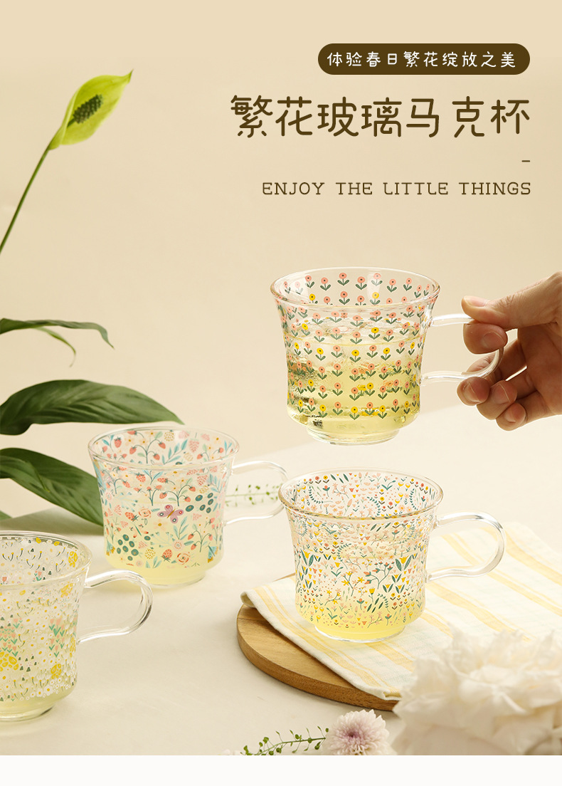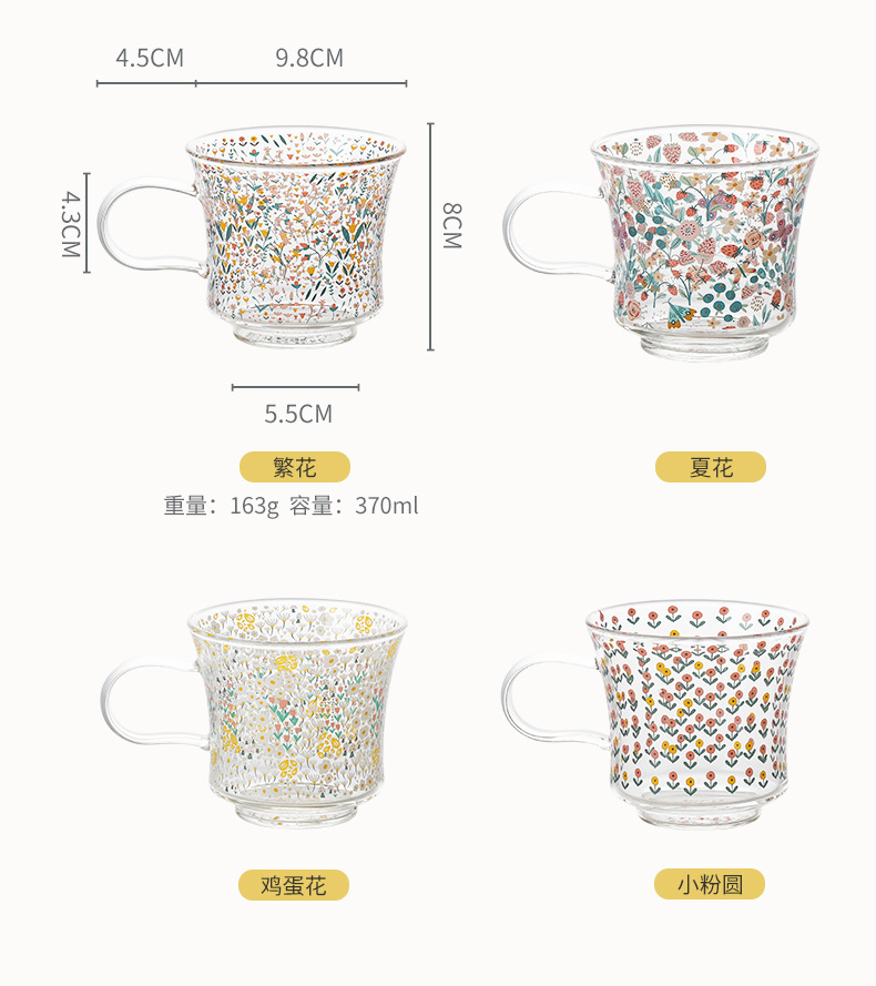 ヒヤシンスコップグラス高ホウ素シリコンコップカップ家庭用高温女子学生高颜値ネット赤デザイン感