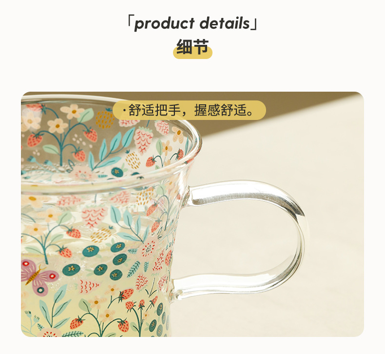 高ホウ素シリコンガラスストローカップ取っ手付き女子カップ高颜値夏スケールカップ蓋付き
