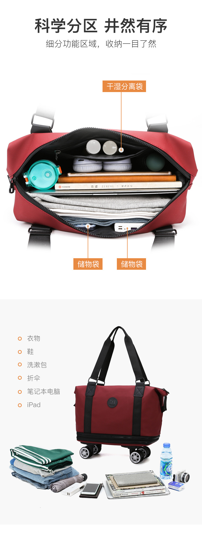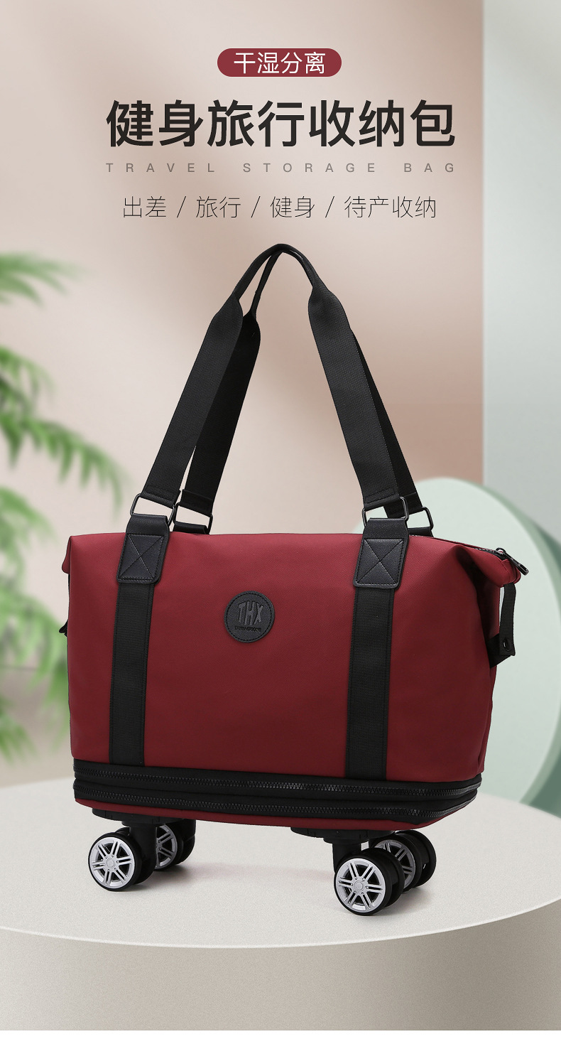 超大容量二重拡張車輪付き旅行バッグ乾湿分離収納バッグ