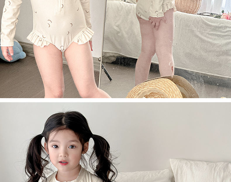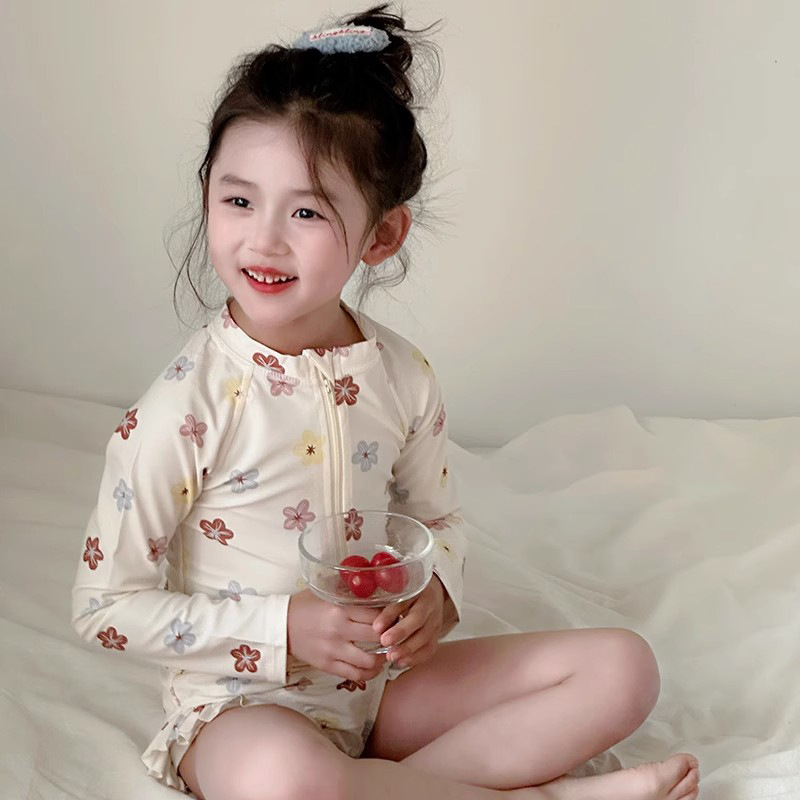 Ins子供水着女の子赤ちゃんワンピース長袖日焼け止め速乾水着洋気女の子かわいい水着