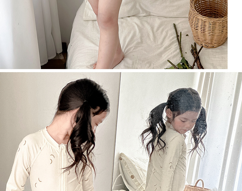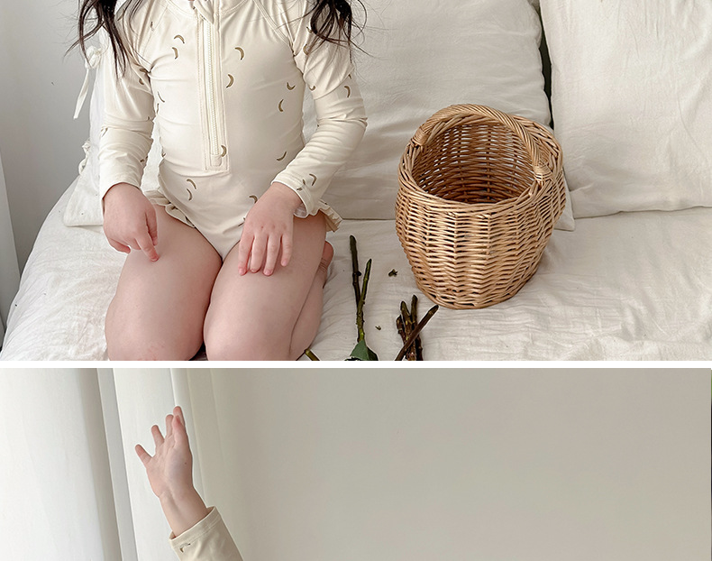 ins子供用水着女の子ワンピース長袖水着ファッショナブルな白い女の子プリンセス日焼け止め水着小中型子供用