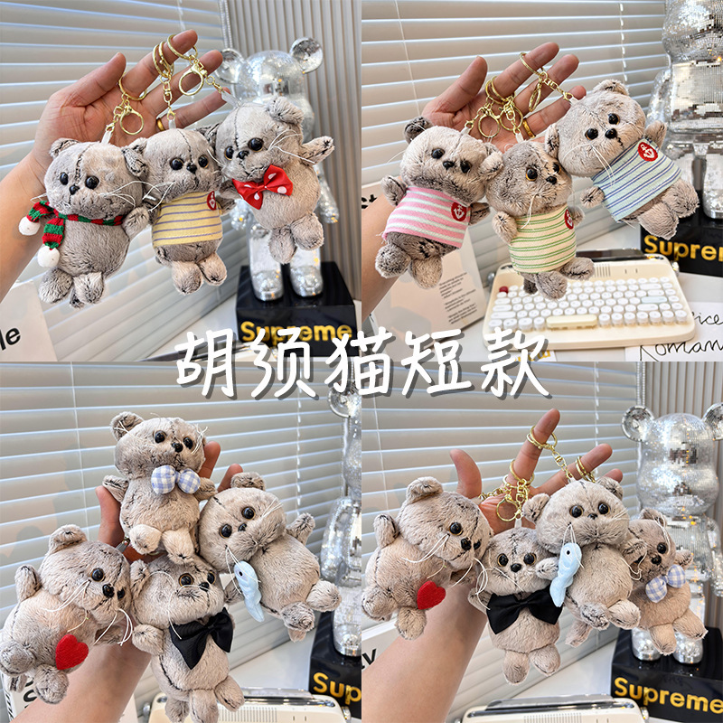 胡须猫背包玩偶小挂件迷你钥匙扣玩具毛绒公仔抓机娃娃机挂饰批发