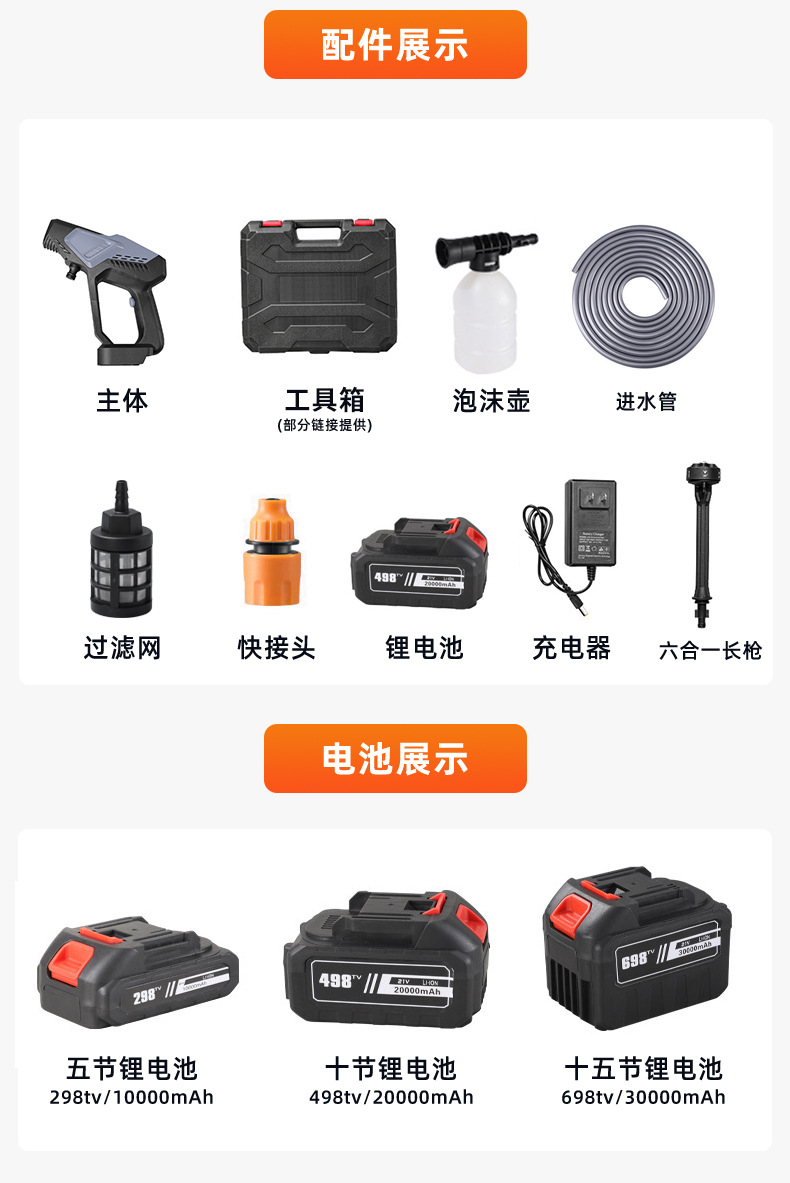 高压锂电洗车水枪大功率便携无线洗车机无刷车载汽车洗车工具跨境