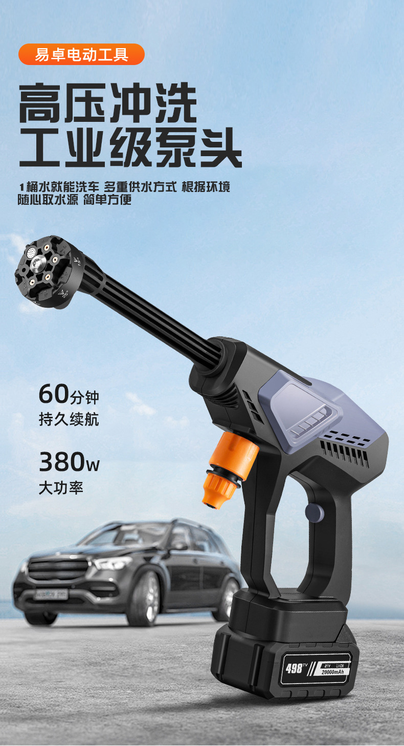 跨境便携式无线大功率高效清洁洗车机家用电动多功能洗车水枪批发