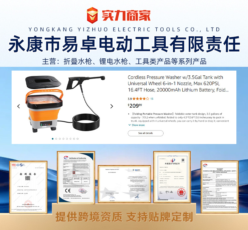 国境を越えた折りたたみ式高圧洗車機、ポータブル高出力洗車水鉄砲、多機能ワイヤレス洗浄機、アマゾン