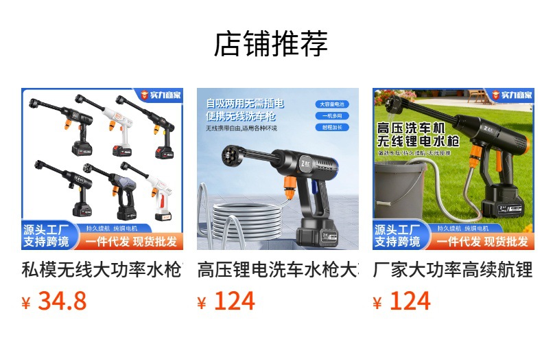 ワイヤレス高出力ウォーターガン高圧洗車機専用水鉄砲ポータブルリチウム電池洗車・花の水やり神器卸売越境