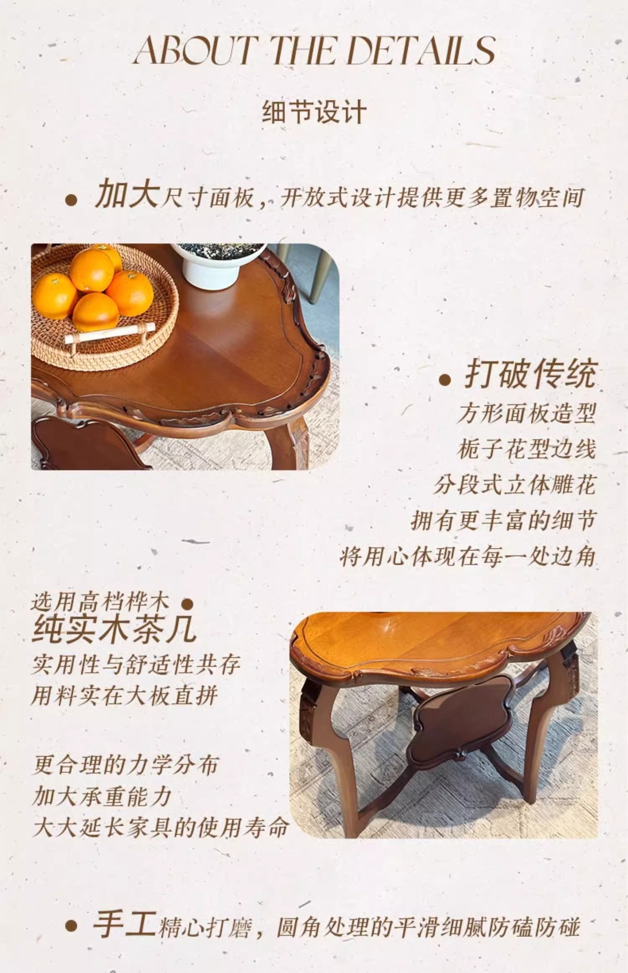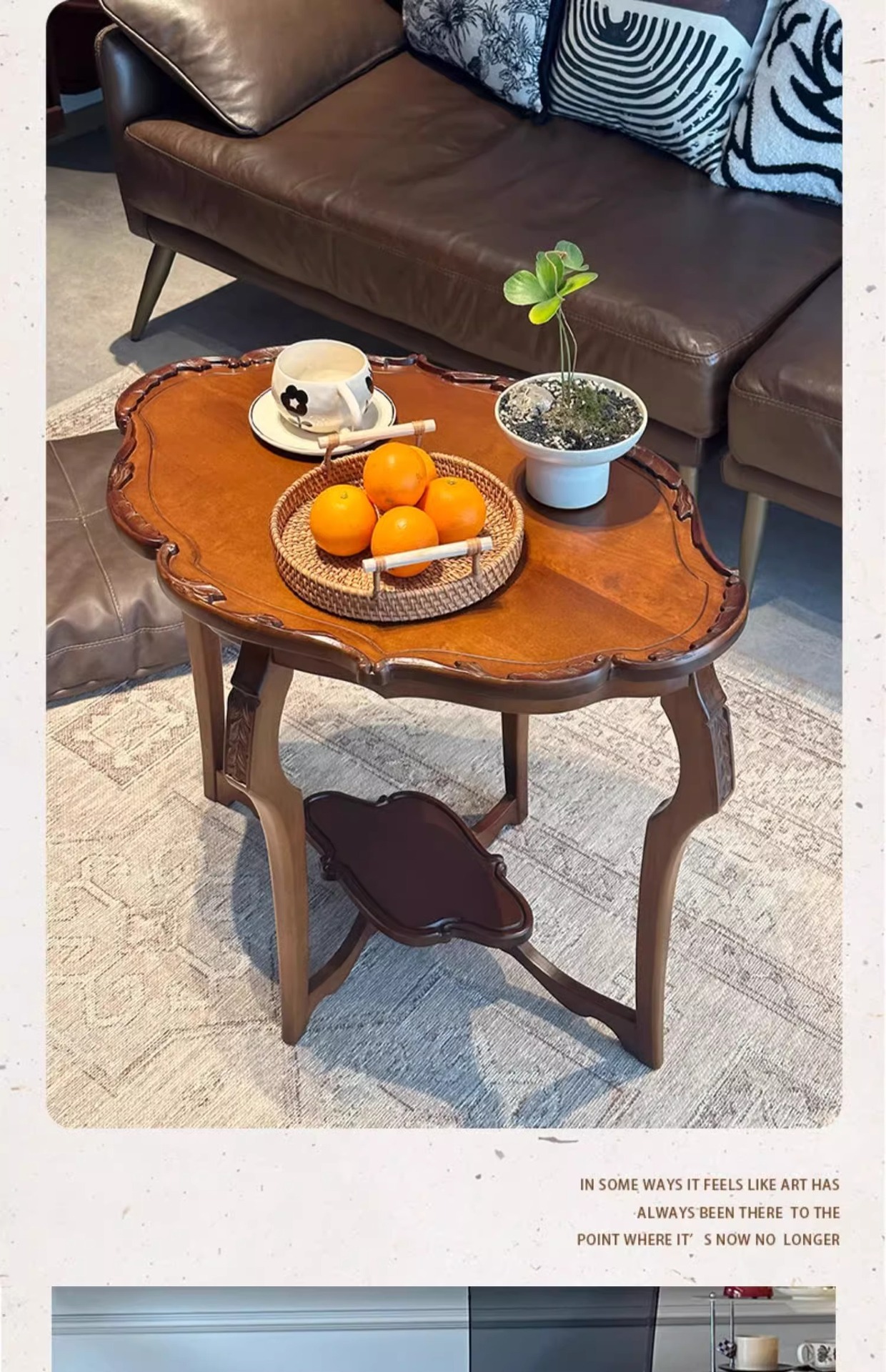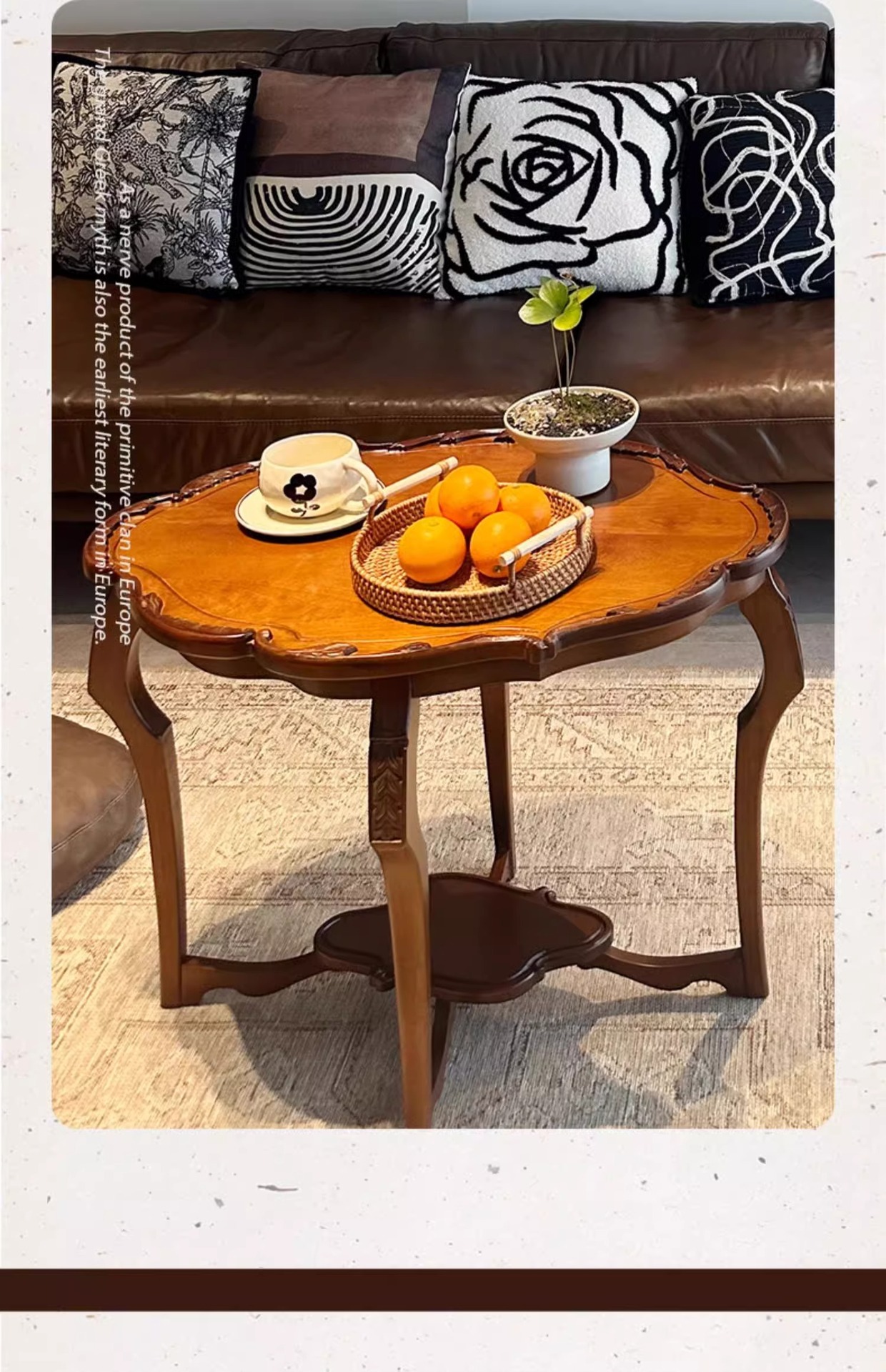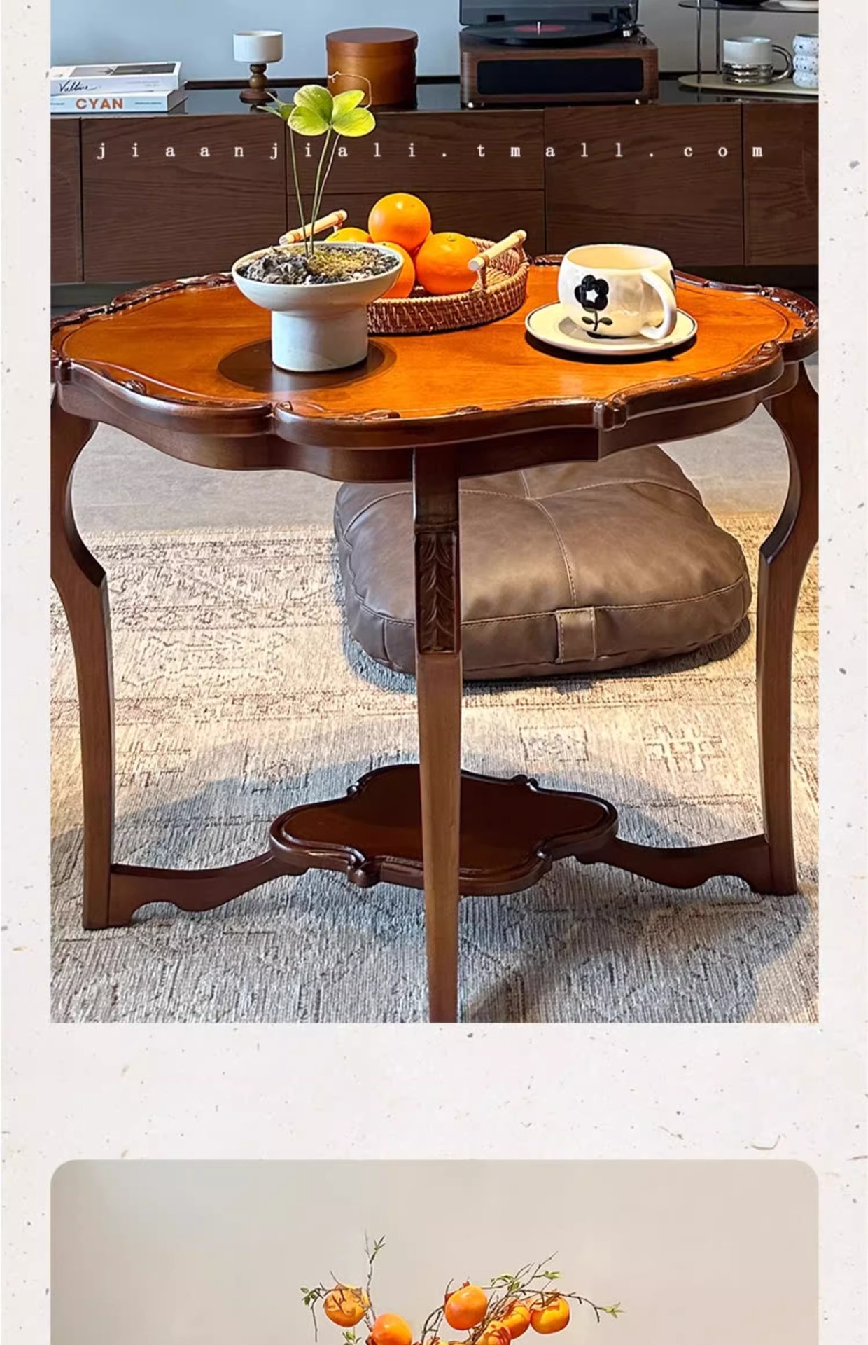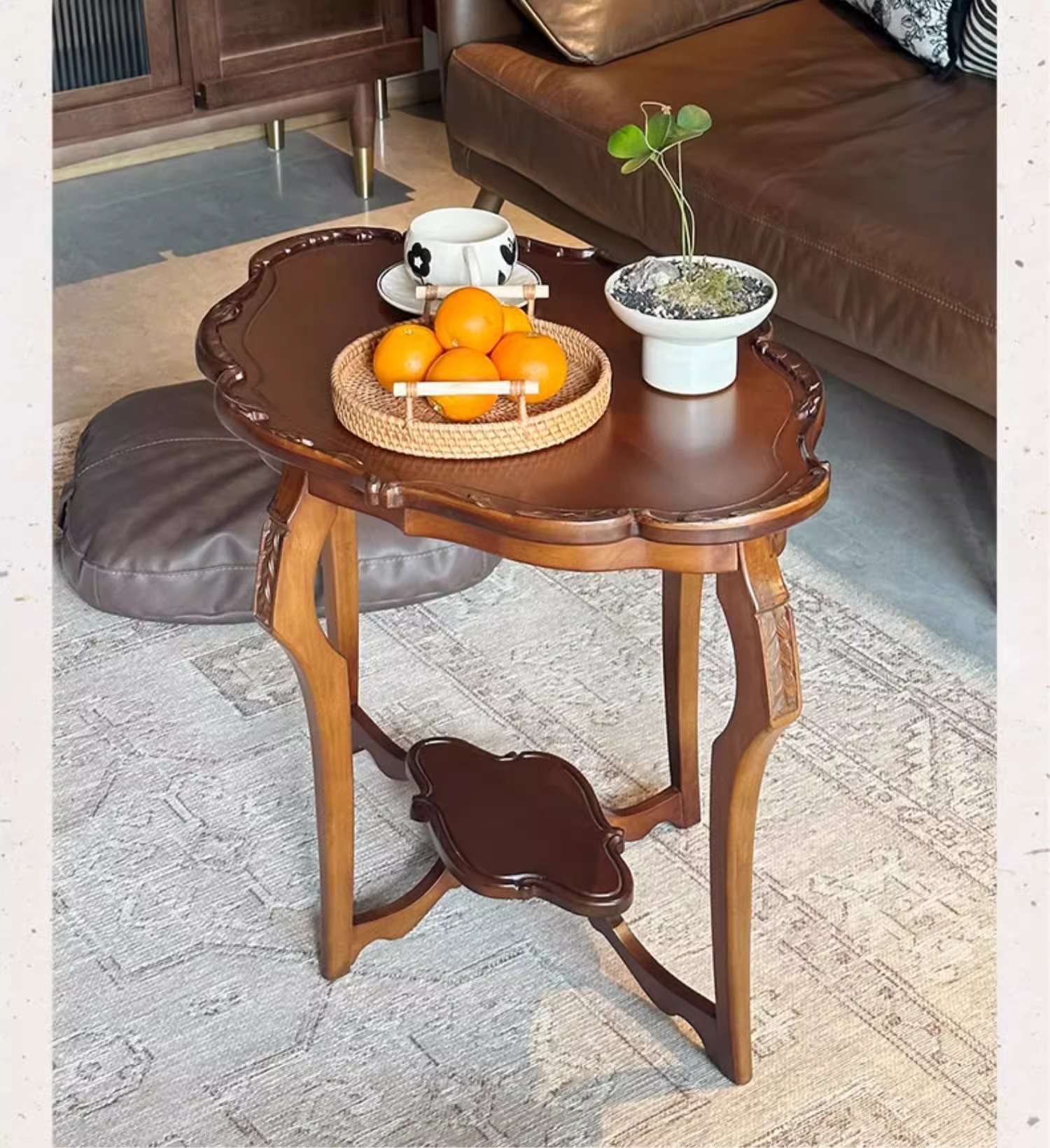 フランス式レトロ実木二重茶数小戸型客間2025新型デザイン高級感芸術花びら低いテーブル