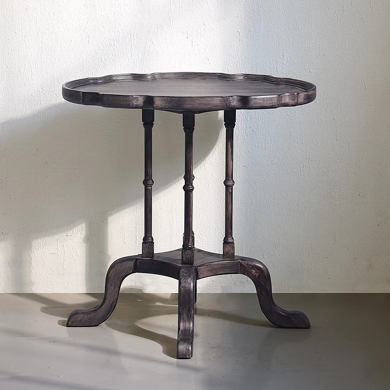 北欧風フレンチレトロ風アンティーク加工無垢材コーヒーテーブル アメリカンカントリーレトロ風ローマ柱丸型小テーブル リビングルームコーヒーテーブル