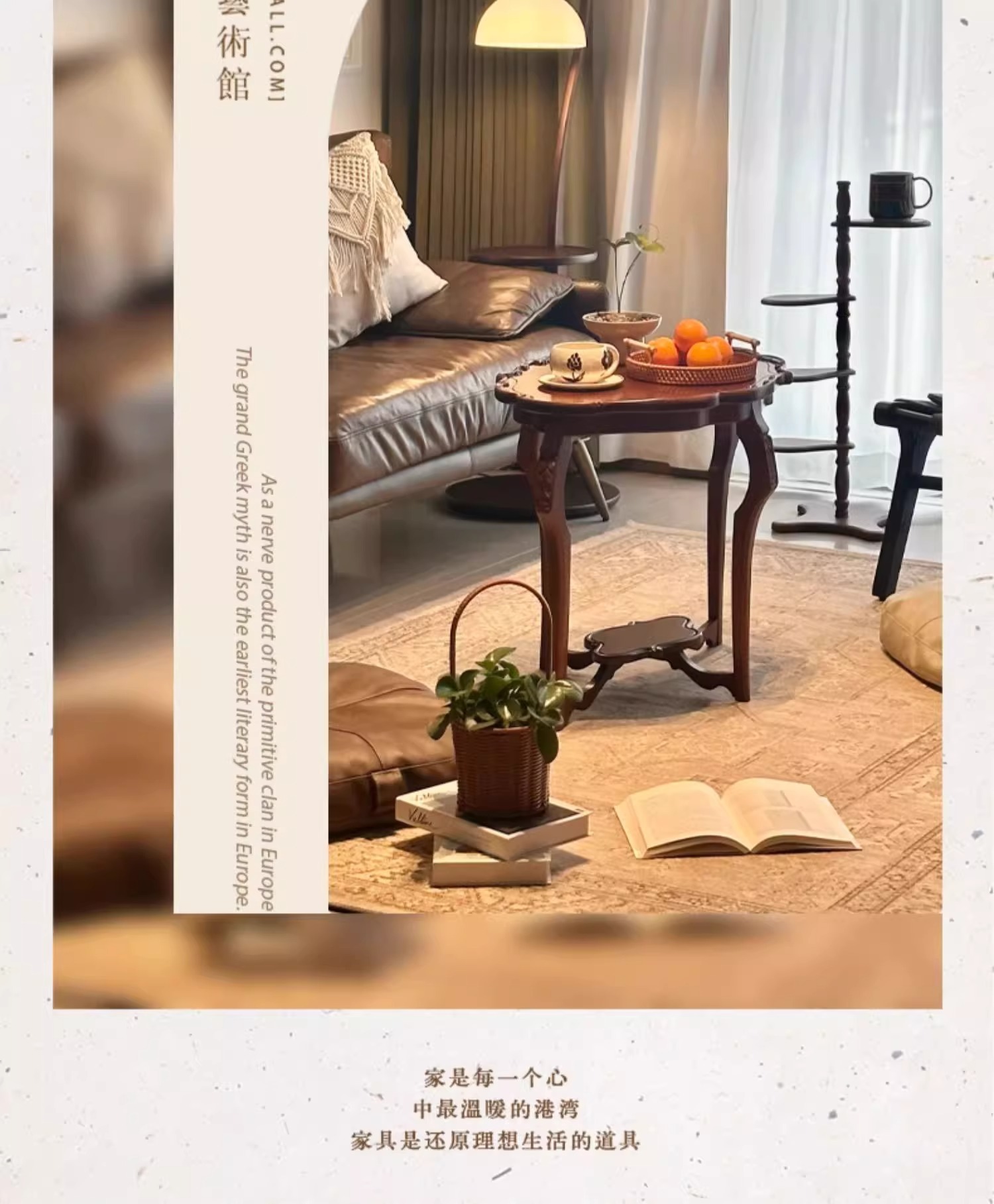 中古风实木边几椭圆形南洋风原木法式咖啡桌茶几影楼拍摄复古角几