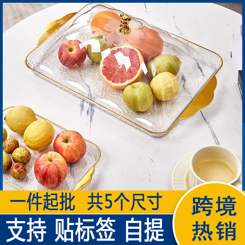 高級感のあるフルーツプレート、軽やかな高級感、金縁のアクリル製、家庭用透明蓋付きフルーツプレート、食品保存プレート、越境で人気商品