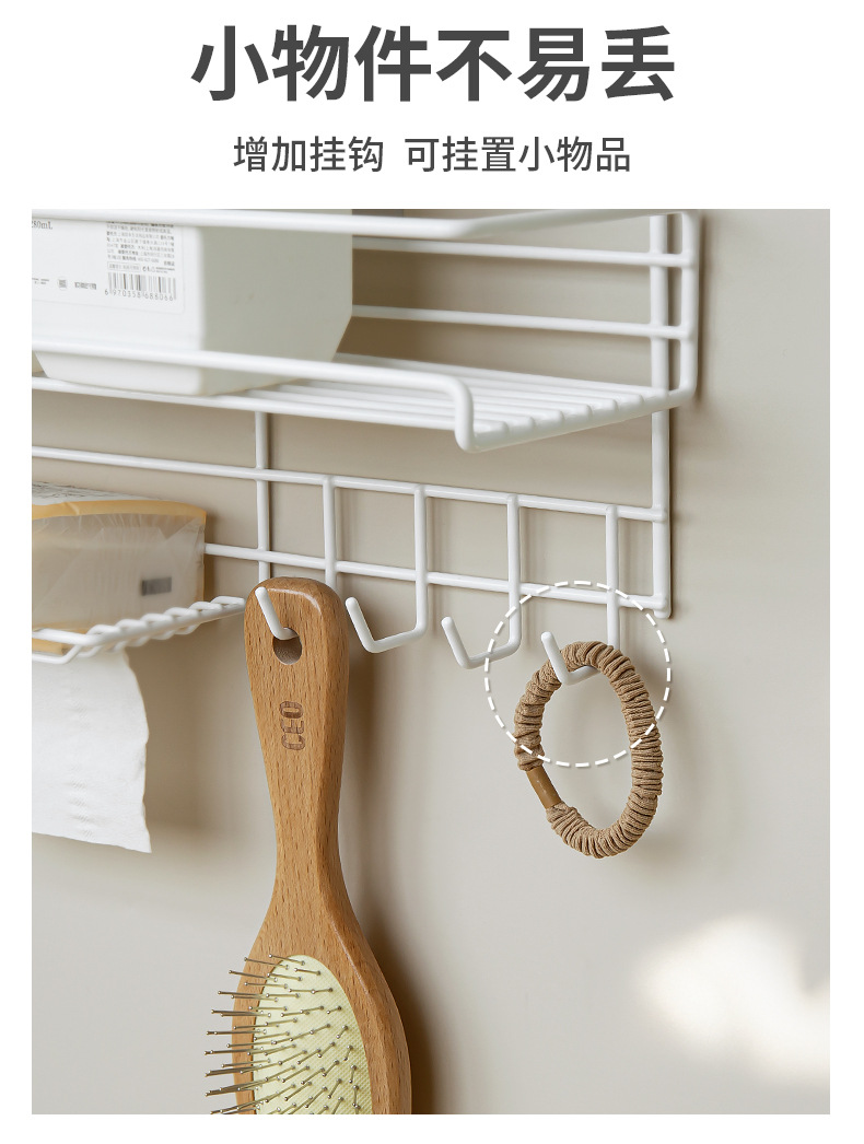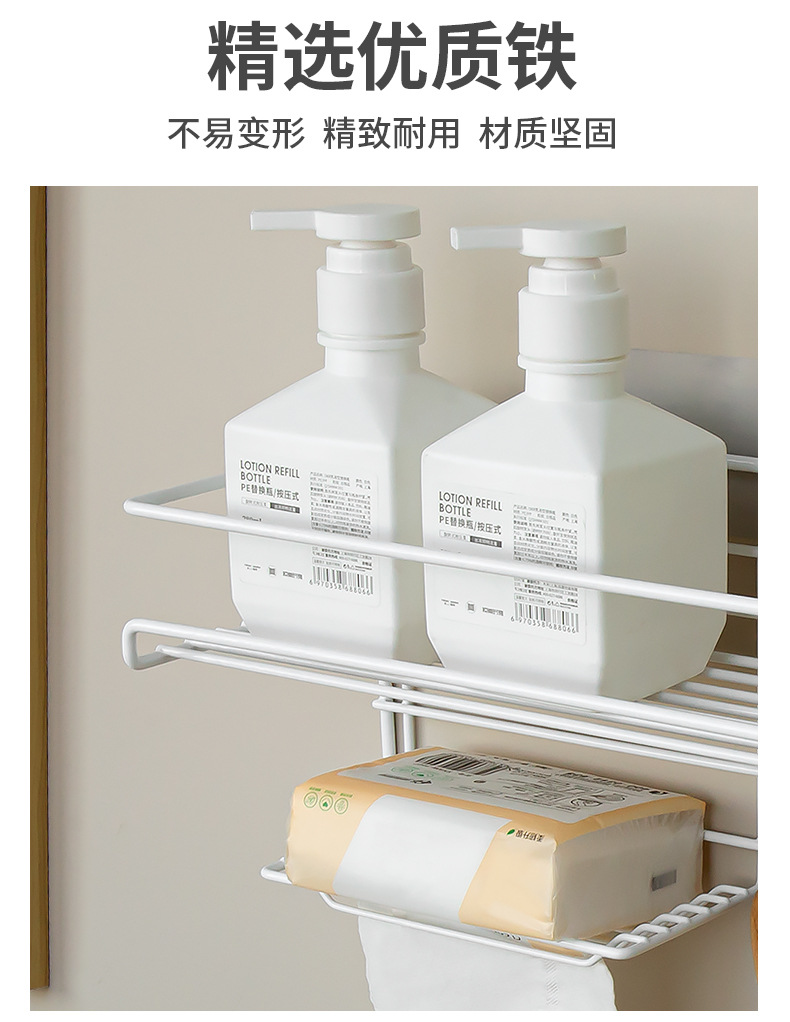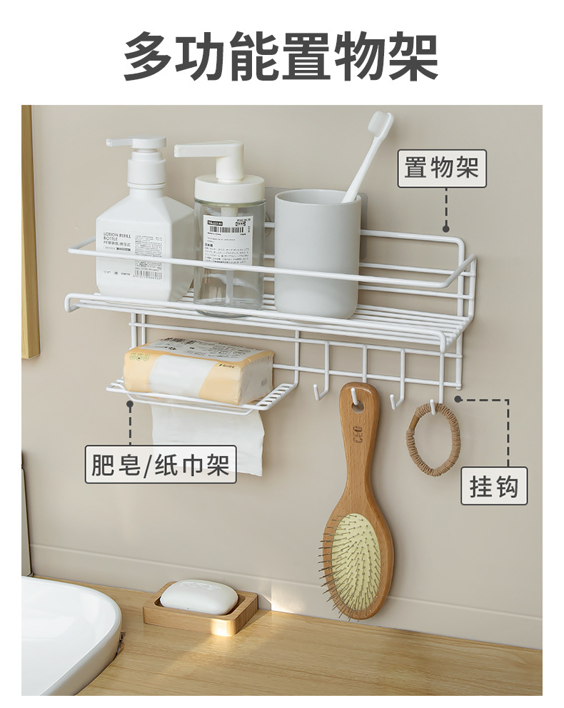 トイレ用壁掛け収納ラック、穴あけ不要、フック付き、設置不要、多機能