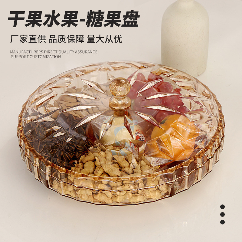 家庭用スナックフルーツプレート、プラスチック製茶菓子・キャンディー仕切り付きプレート、蓋付きドライフルーツボックス、軽奢フルーツ、高級感のあるティーテーブル
