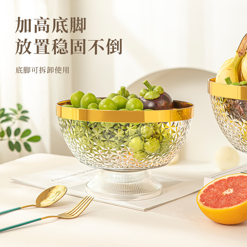 家庭用コーヒーテーブルフルーツプレート背の高いフルーツプレートホットスタンピングエッジフルーツプレート蓋付きハイエンドプラスチックフルーツバスケットドライフルーツポット