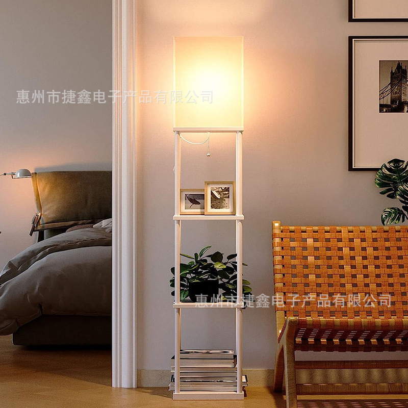 アマゾンクロスボーダー直供白色収納棚リネンランプカバーフロアランプ木製置物三層棚フロアランプ