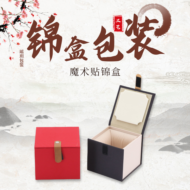 魔术贴锦盒紫砂壶包装盒 创意壶茶具包装盒 简易麻布建盏小礼盒