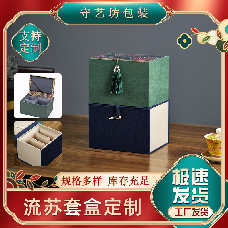 蓋ボウル錦箱レトロタッセル紫砂ポット蓋ボウルティーセット包装箱セラミック木製バックルギフトボックス