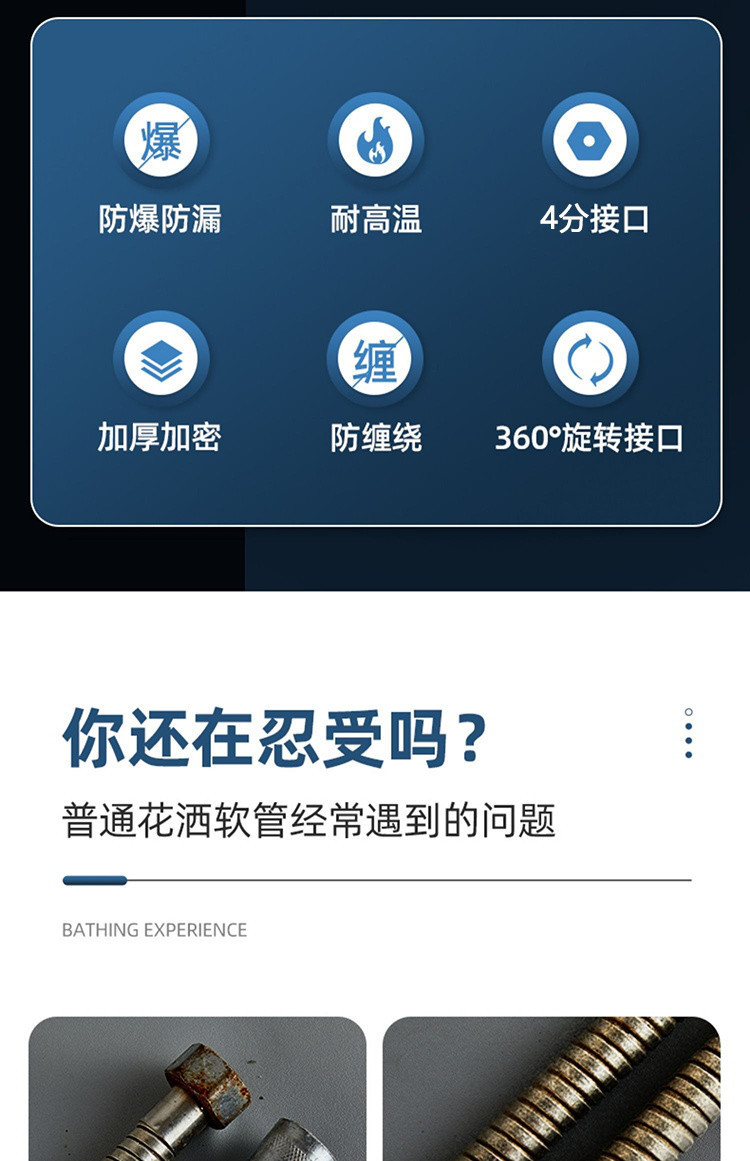シャワーホース給湯器高圧防爆耐高温ステンレスシャワーホースシャワーヘッド4分シャワーチューブ