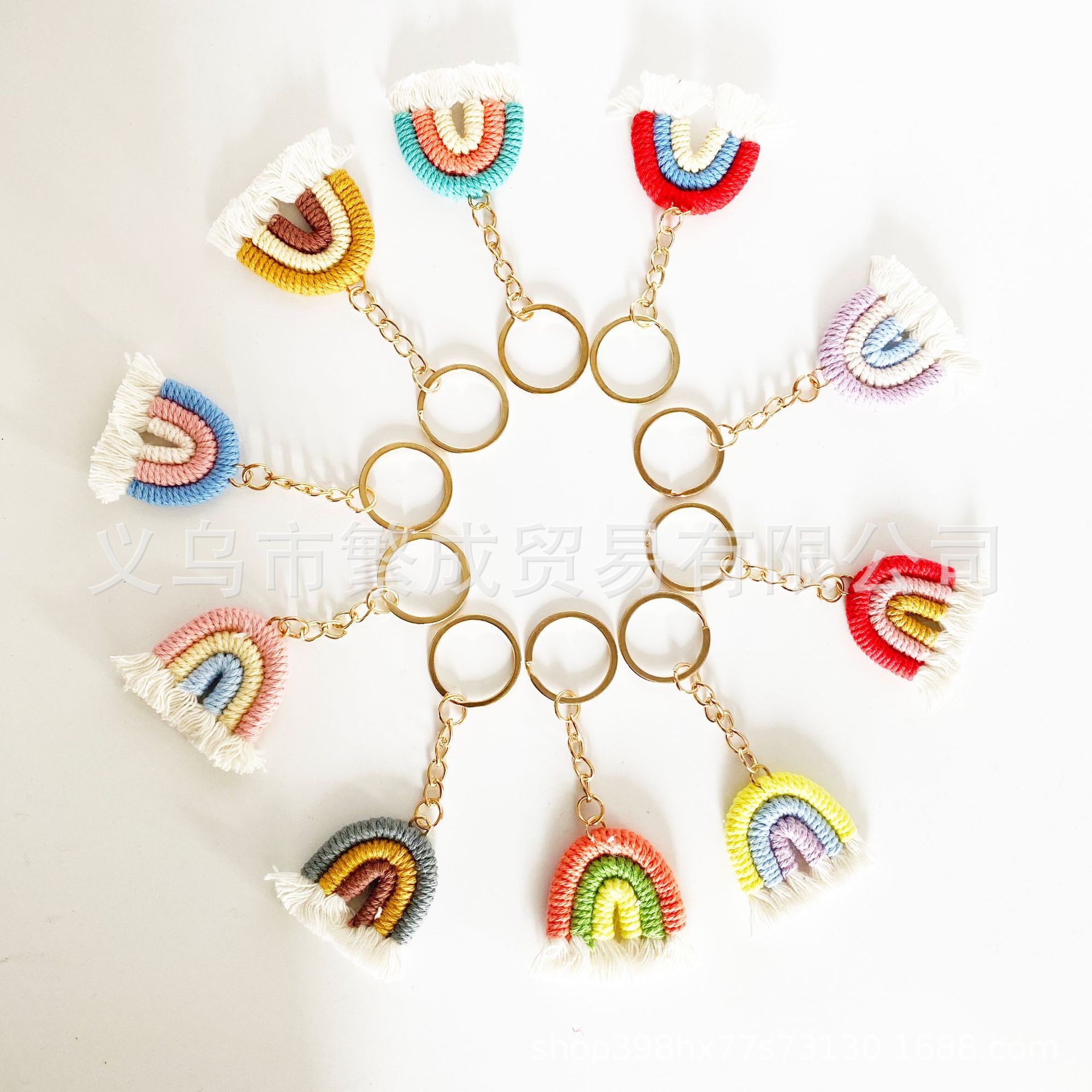 ファッションミディアムレインボーシリーズペンダントキーホルダー手作り綿糸編組ひげバッグカーアクセサリーパブリックカー