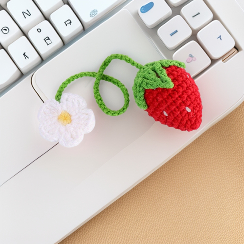 ペンダントかぎ針編みイチゴキーホルダー diy 手作り完成バッグアクセサリー装飾車のペンダント