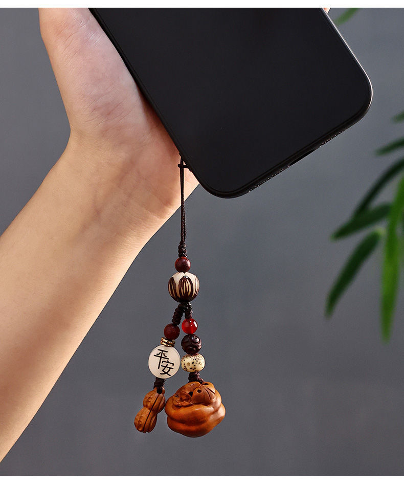 「秋?蓮」レトロ桃木蓮蓬携帯電話ペンダントキーホルダーバッグ