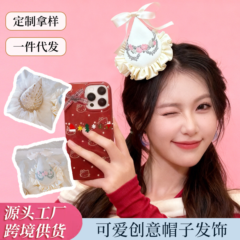 バレエ風メッシュ誕生日ヘアクリップ、甘いプリンセスガールヘアアクセサリー、ホリデーパフォーマンスデコレーション、赤い尖った帽子