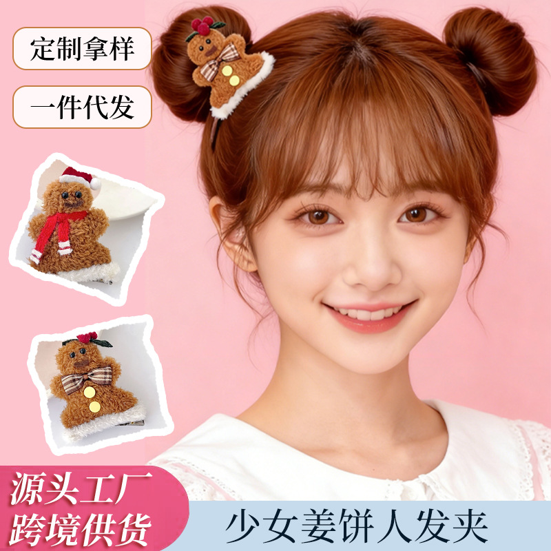 女の子向けクリエイティブなインス風ジンジャーブレッドマンの漫画風ヘアピン、環境に優しく髪にダメージのない布製ヘアアクセサリー、女の子向けのかわいいダックビルクリップ