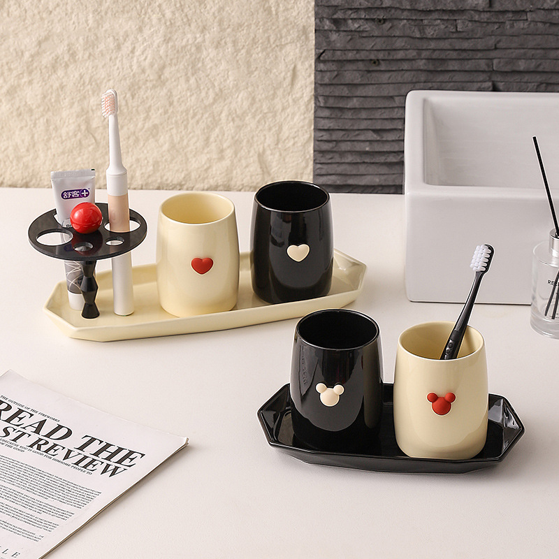 うがいカップカップル歯磨きカップ軽贅沢高級陶磁器家庭用歯カップ洗面カップ高級感歯ブラシカップセット