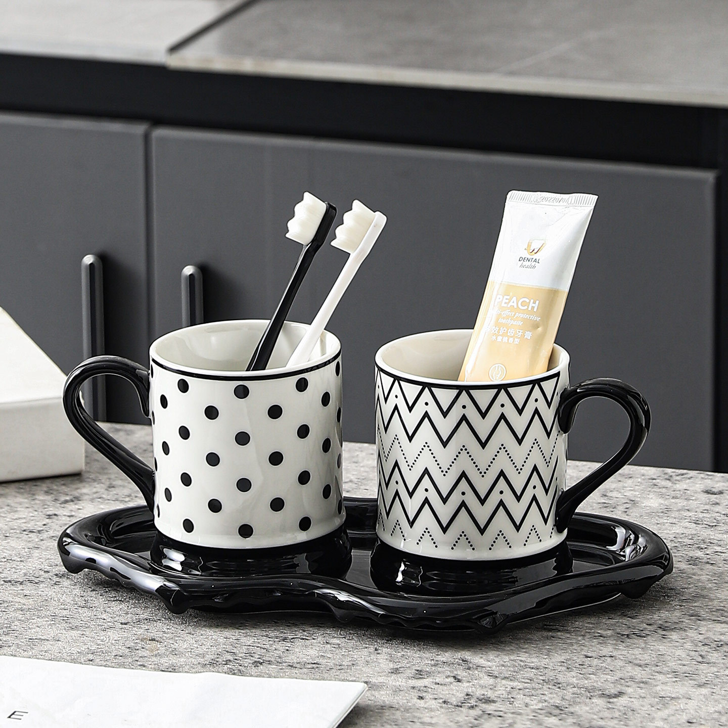 白黒チェック柄セラミックトイレタリーセット、マウスウォッシュカップ5点セット、ライト高級ホテルバスルーム歯磨きカップ4点セット