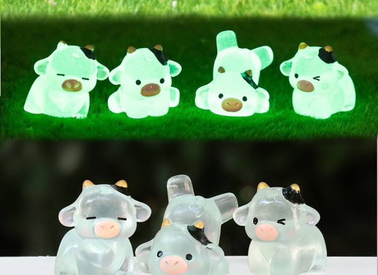 アニメ夜光透明な乳牛のフィギュア人形潮游びミニチュアシミュレーション動物人形創造性微景観