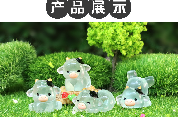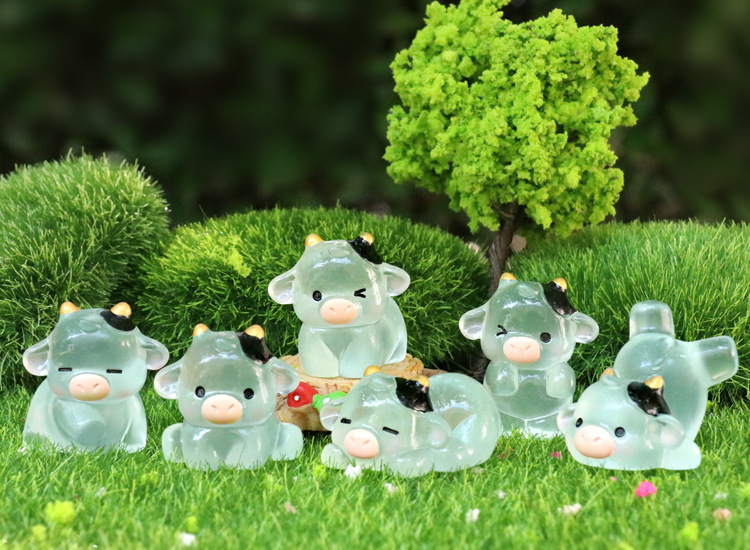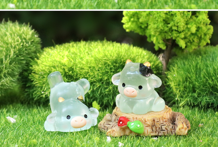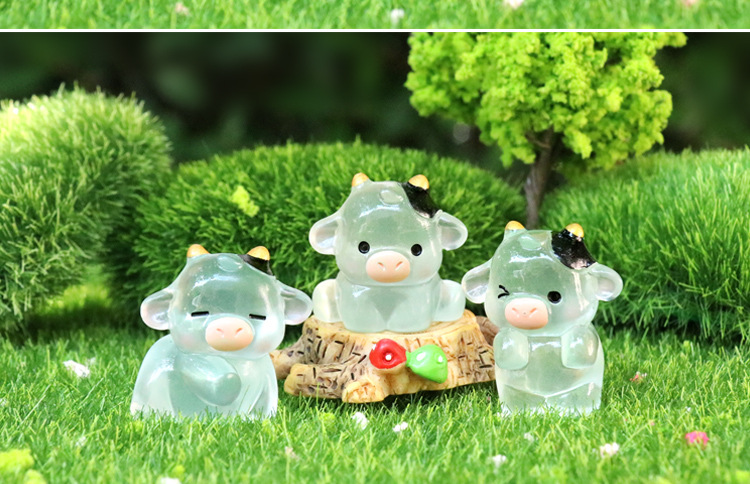 微景観創意可愛い夜光乳牛園芸造景diy装飾品アクセサリーミニデスクトップ小置物