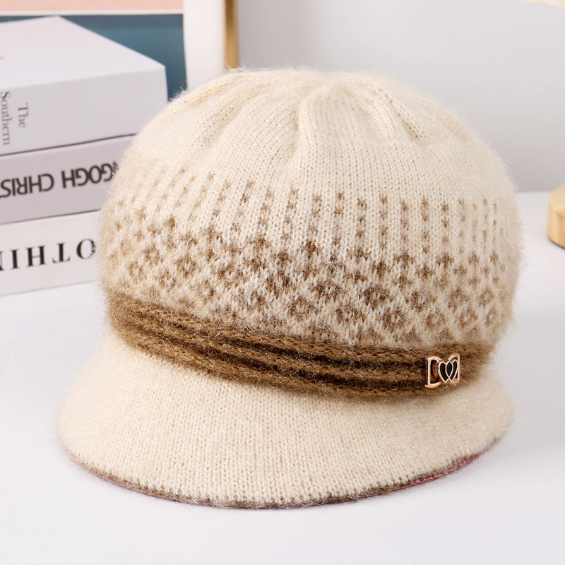秋冬新中老年帽子子供ニット毛糸帽子女性ベルベット保温耳保護帽子母祖母帽子