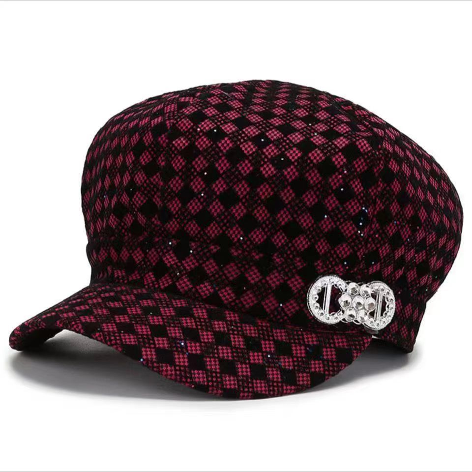 秋冬中高年鴨舌帽八角格子ベレー帽おばあさんニ帽子