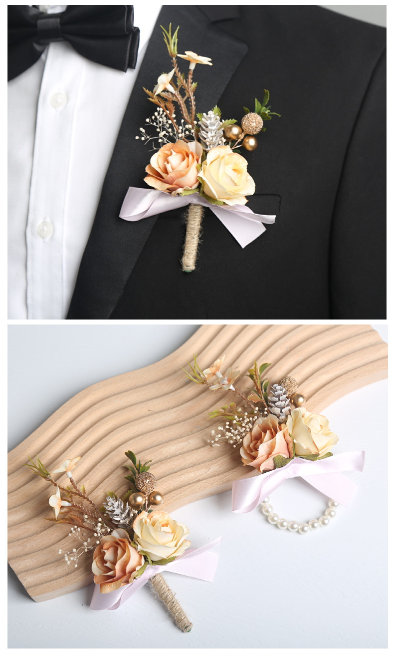 結婚式の胸花襟花迎賓花アマゾン国境を越えたヨーロッパ風装飾姉妹団手首花結婚式の胸花パーティー