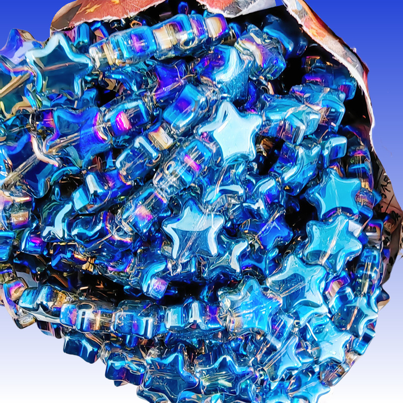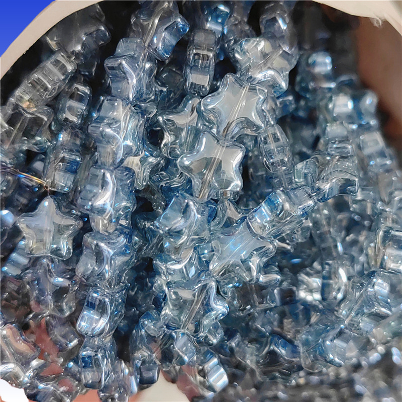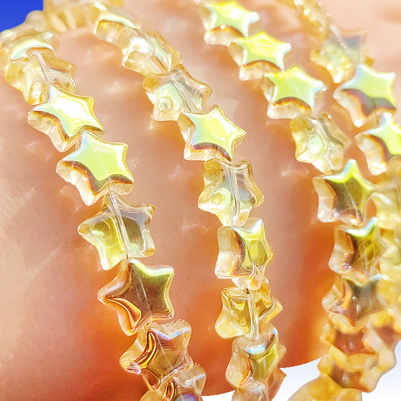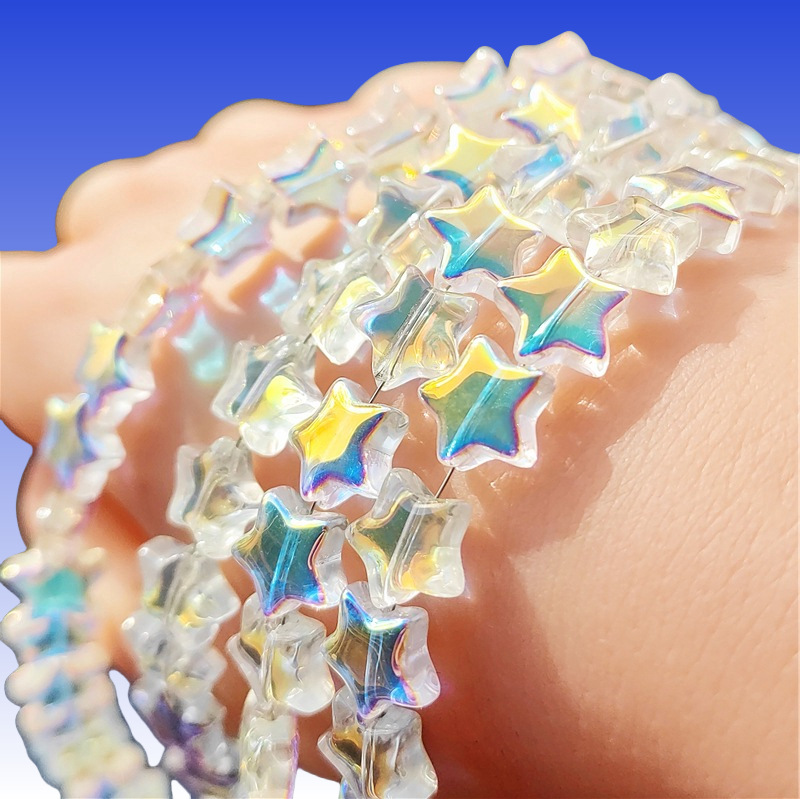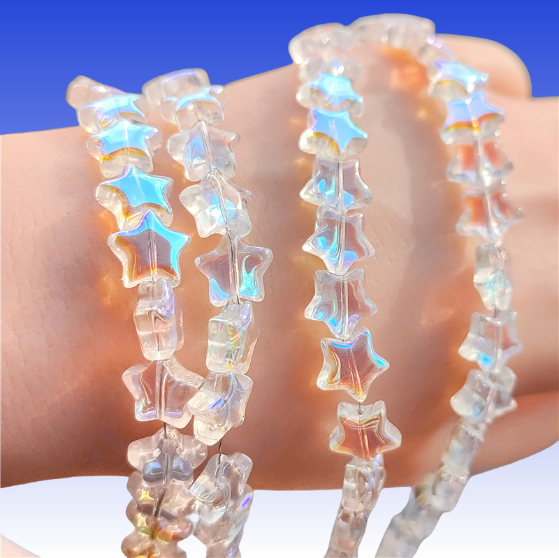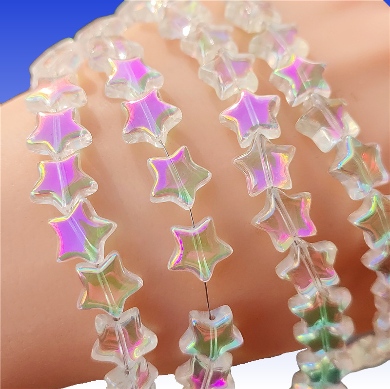 卸売り光面五角星水晶散珠8mm 10mm直孔diyブレスレット髪飾り材料星形ビーズ