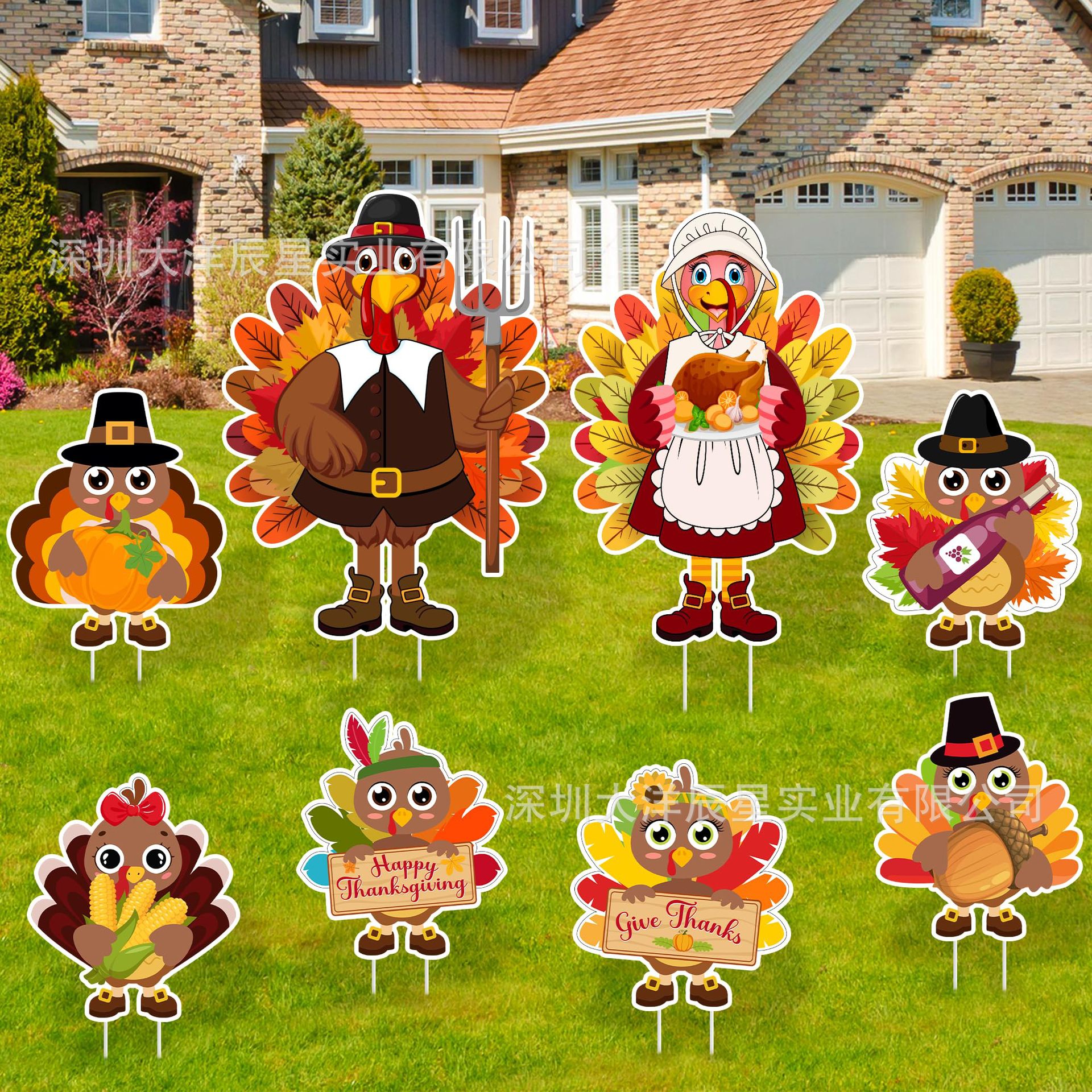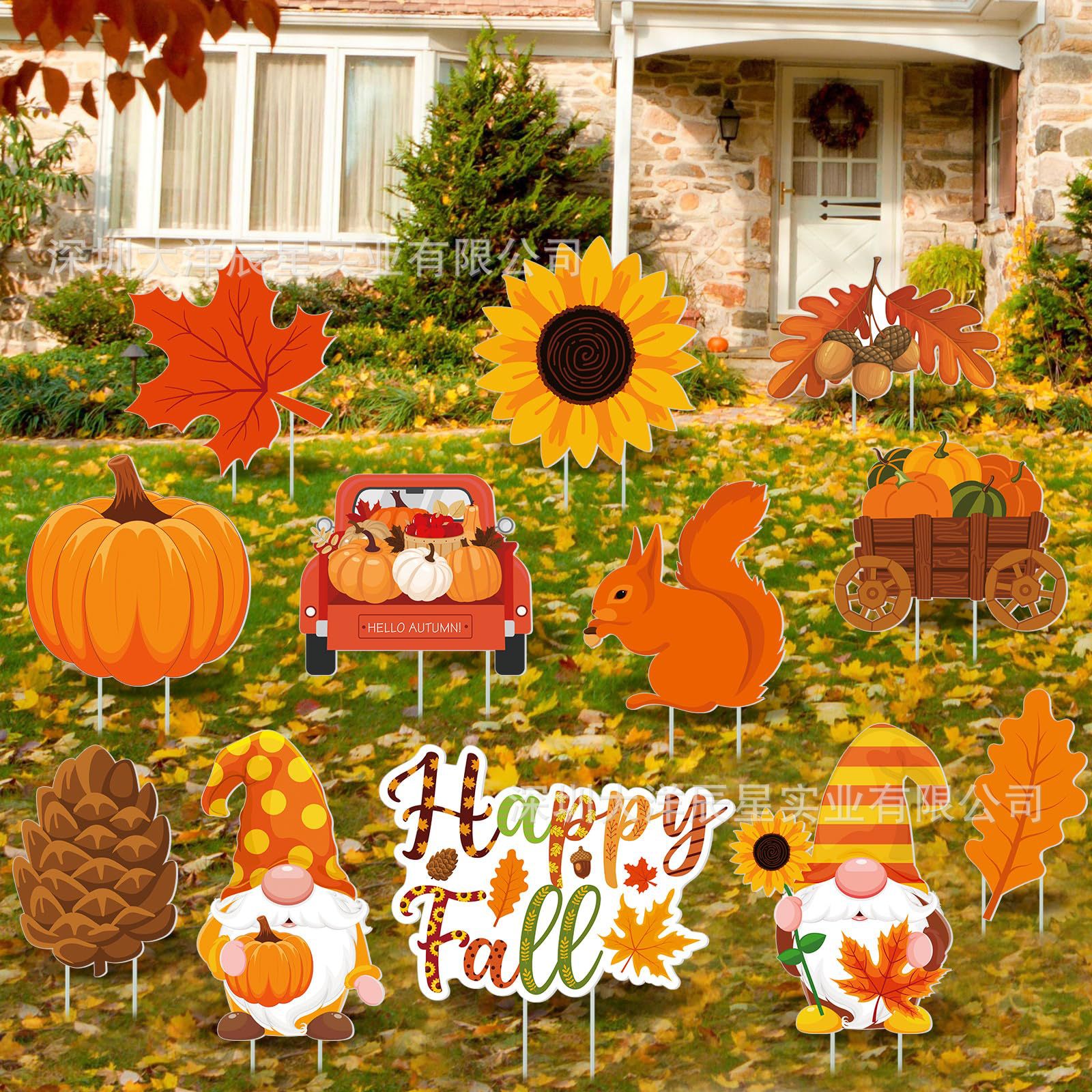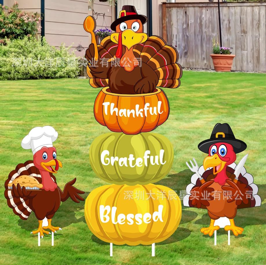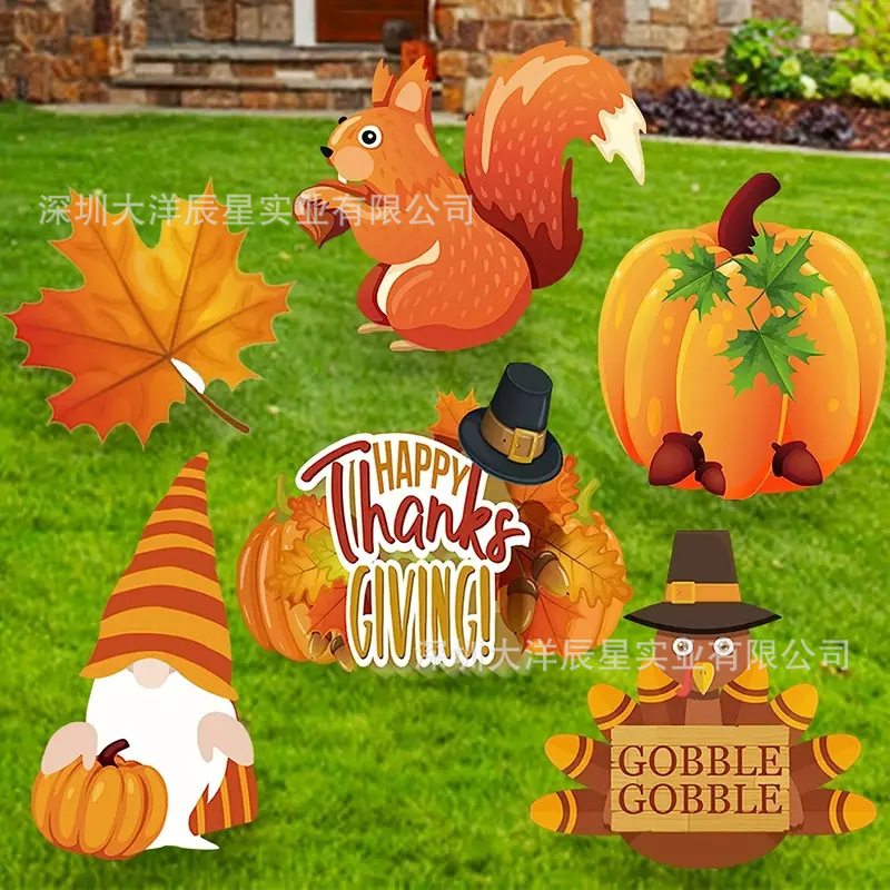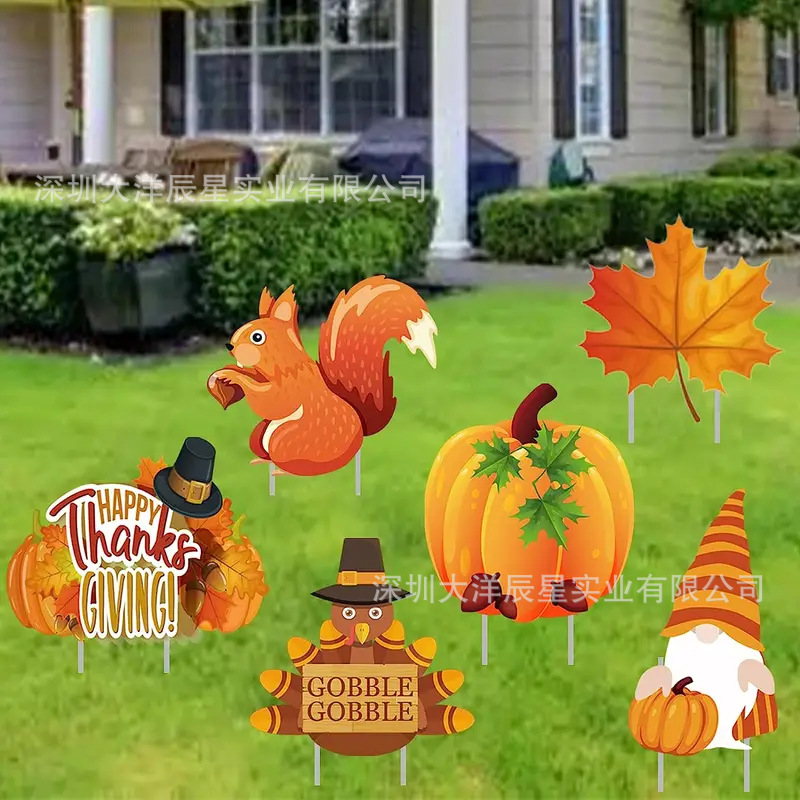 2024クロスボーダー新型感謝祭地挿し看板かぼちゃ9点セット屋外花園マーク祝日パーティー装飾品