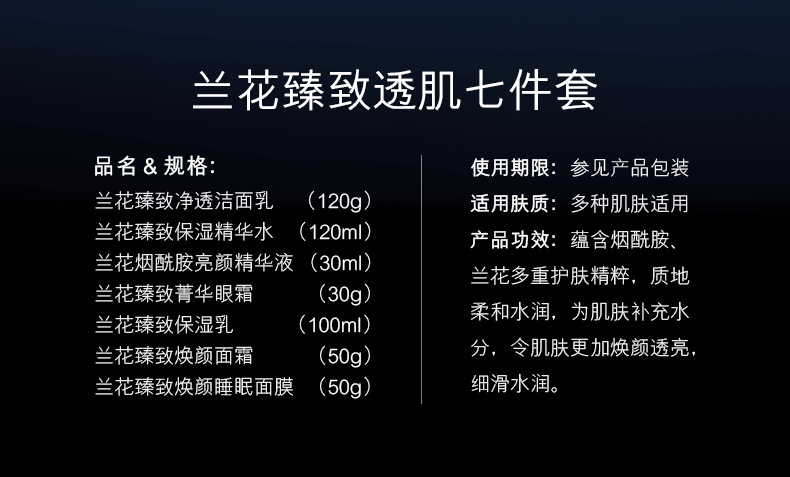 藍尼芳可蘭臻透肌七点セットスキンケア保湿潤いセットケースの黒い瓶の正規品卸売り