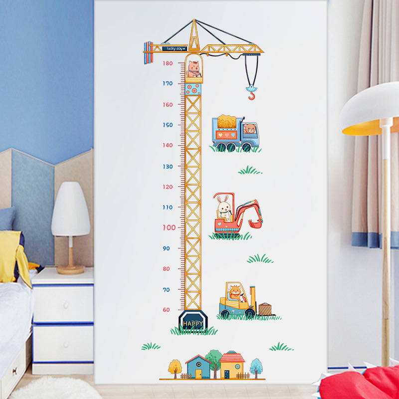 身長測定の壁に赤ちゃんの子供の体の高さを貼って、0から身長を測って、壁を傷つけません。