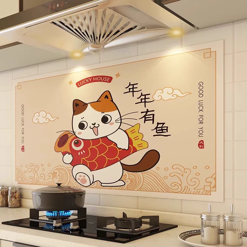 台所の防油シールは防火耐高温防水で壁紙を貼って、かまどのレンジフードの壁に貼り付けて、卸売りを代行します。