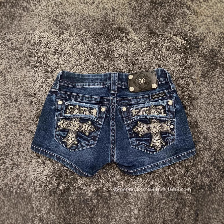 タイトで多用途なショーツクロスボーダー外国貿易アメリカンレトロな個性ストリートパターン刺繍春夏デニムショートパンツ女性用