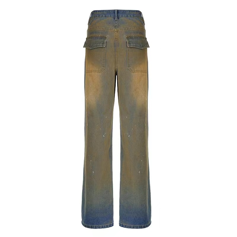 2023秋の新型揚げ街の大ポケットデザイン洗水グラデーション工装傘兵ズボンカジュアルジーンズ女潮