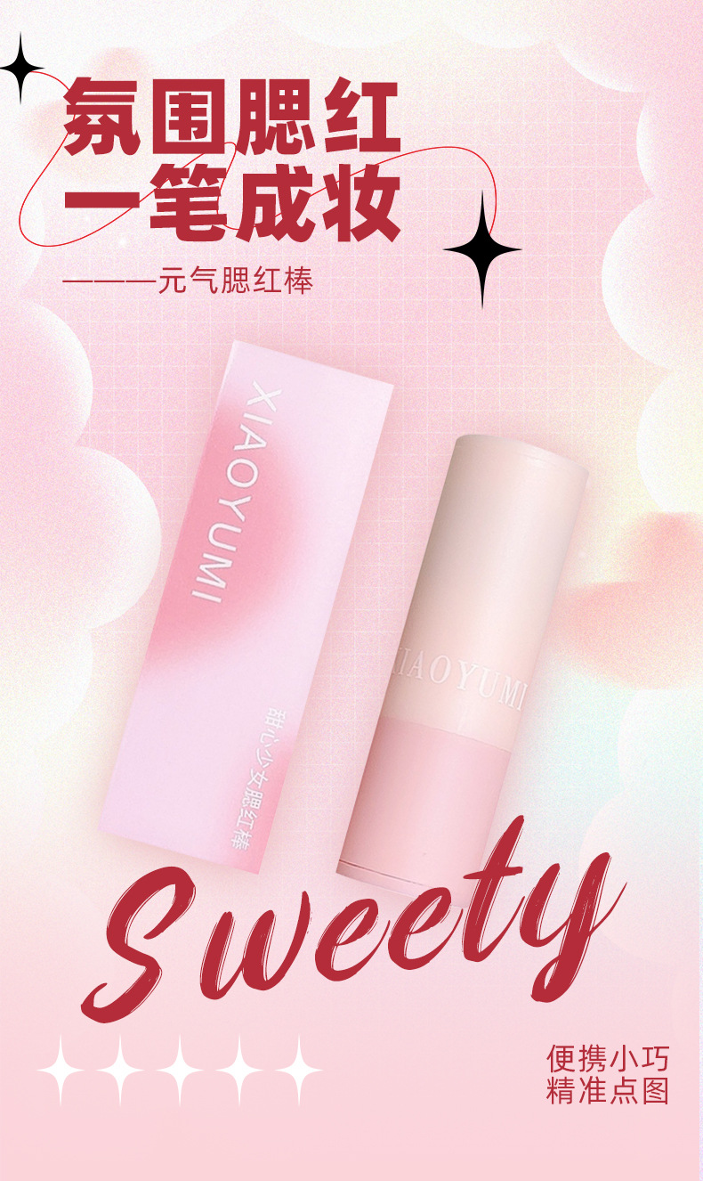 XIAOYUMIスイートガールチークスティック キュートなノーメイク 超自然な単色チーク ライトメイク メーカーチークスティック
