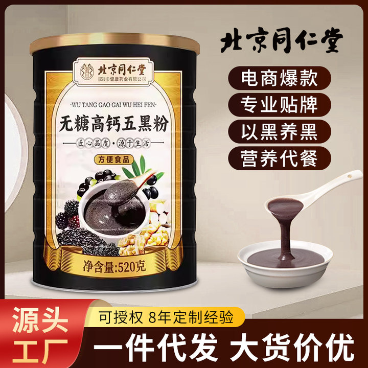 北京同仁堂无糖高钙五黑粉饱腹代餐粉早餐黑豆黑米现货批发代发