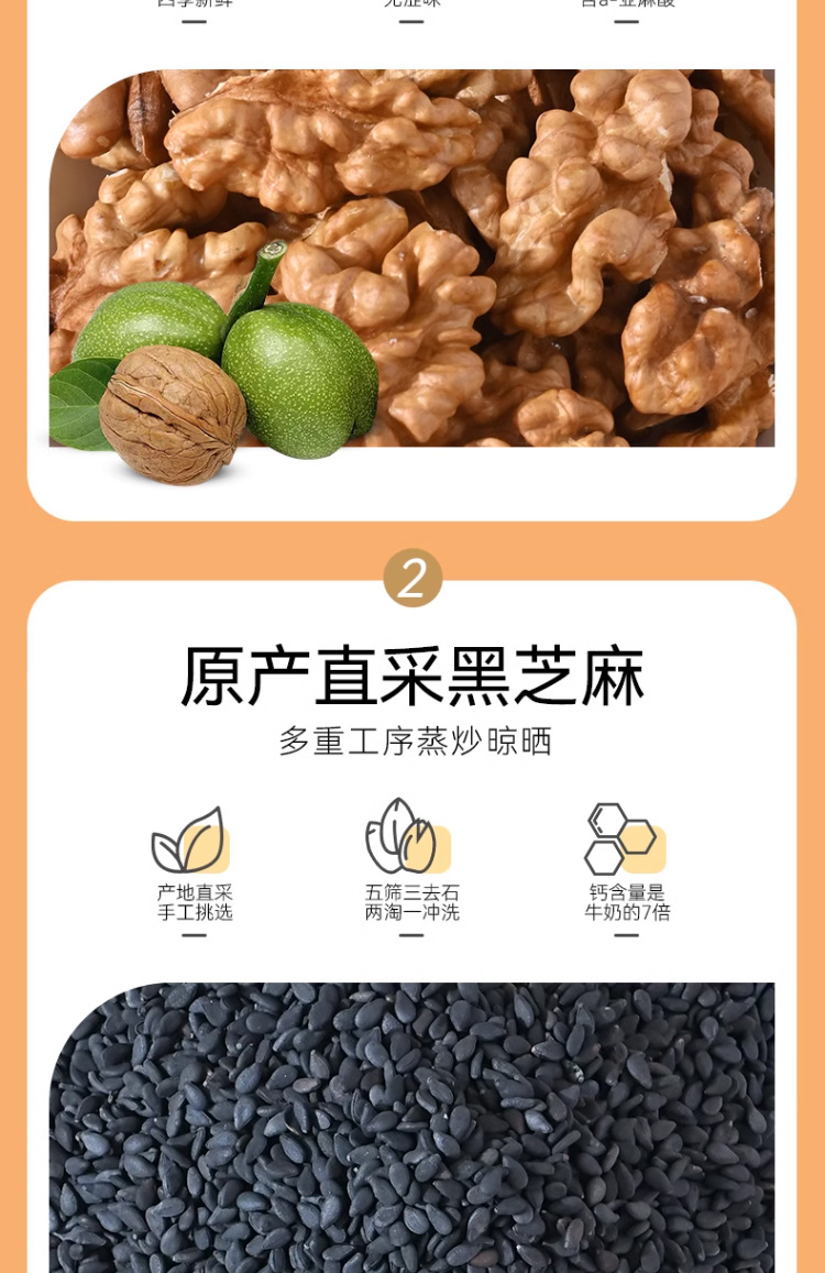梱包仕様 黒ごま、黒豆、くるみ、桑の実、五黒粉 600g,無糖高カルシウムファイブブラックパウダー 520g