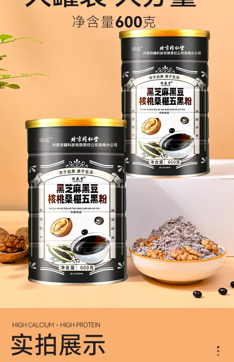 南京同仁堂黑芝麻核桃桑葚粉600g罐装黑豆养生早餐代餐黑芝麻糊