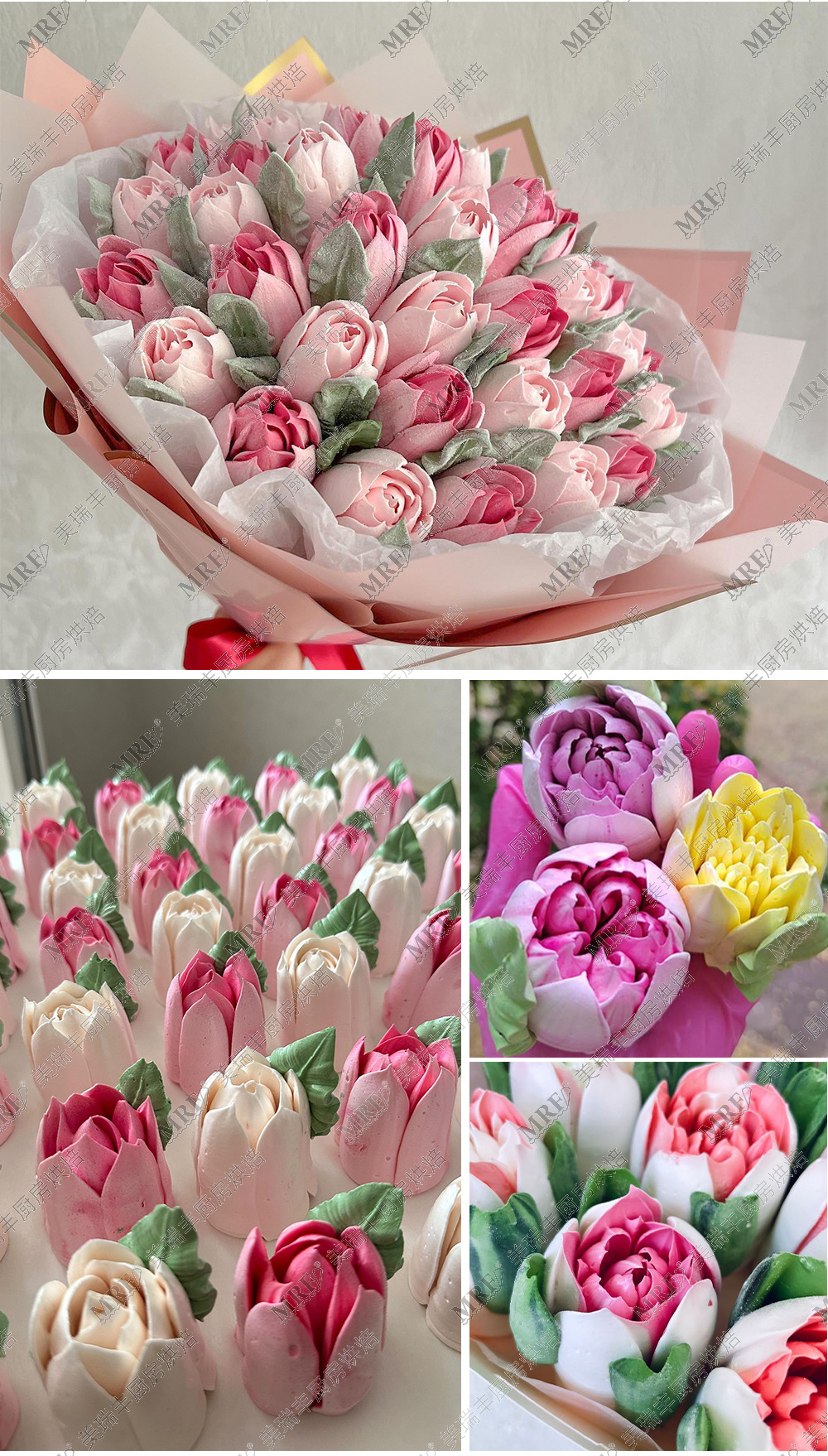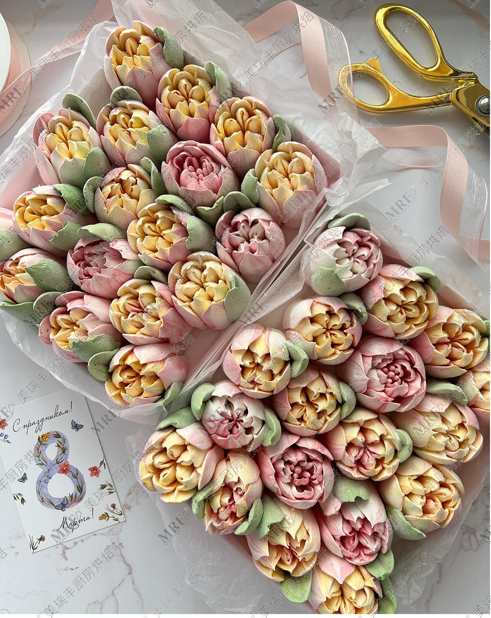 26種類の特大号ロシアマシュマロの花束の表装の口は花を押して一体になってあんを成型します。