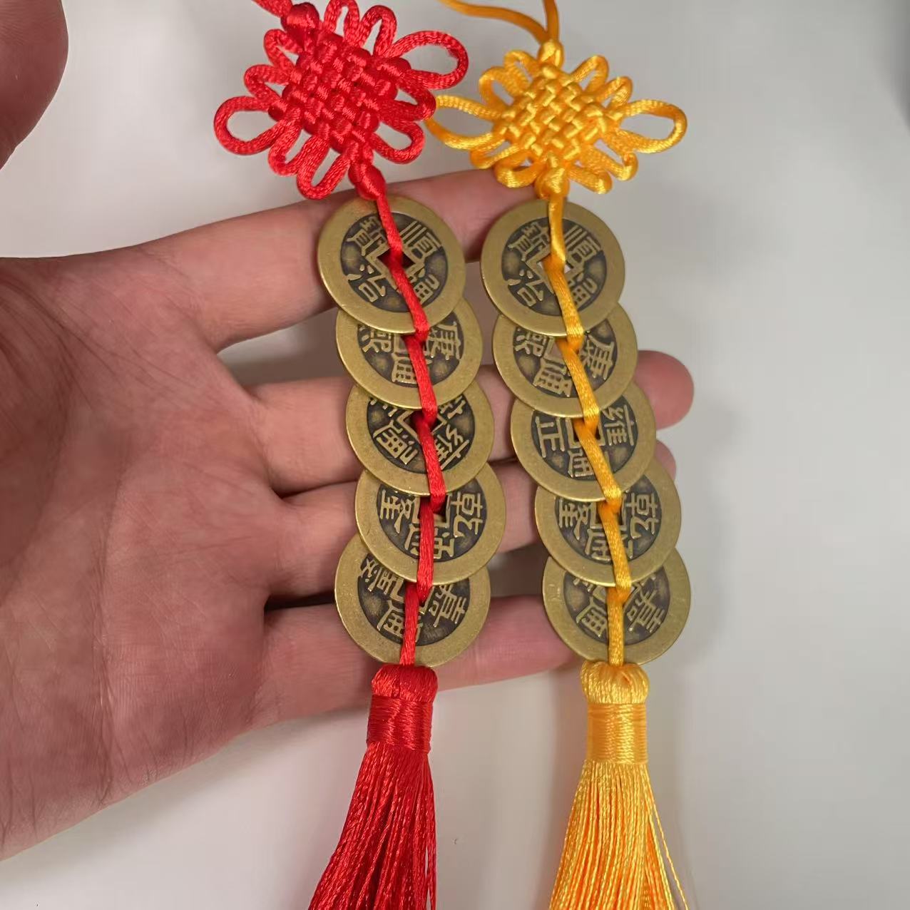 纯铜加厚五帝钱2.58真铜中国结红黄色五帝钱挂件仿古钱币风水用