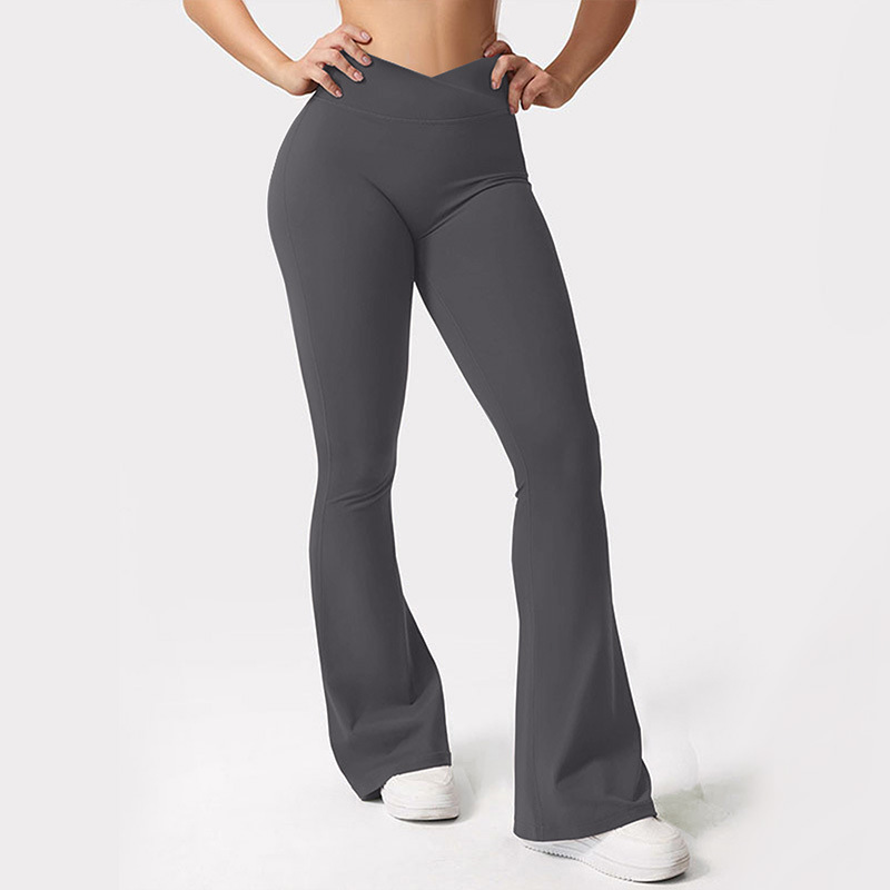 V ウエスト弾性スポーツタイトパンツ女性ピーチヒップリフティングヨガフレアパンツ