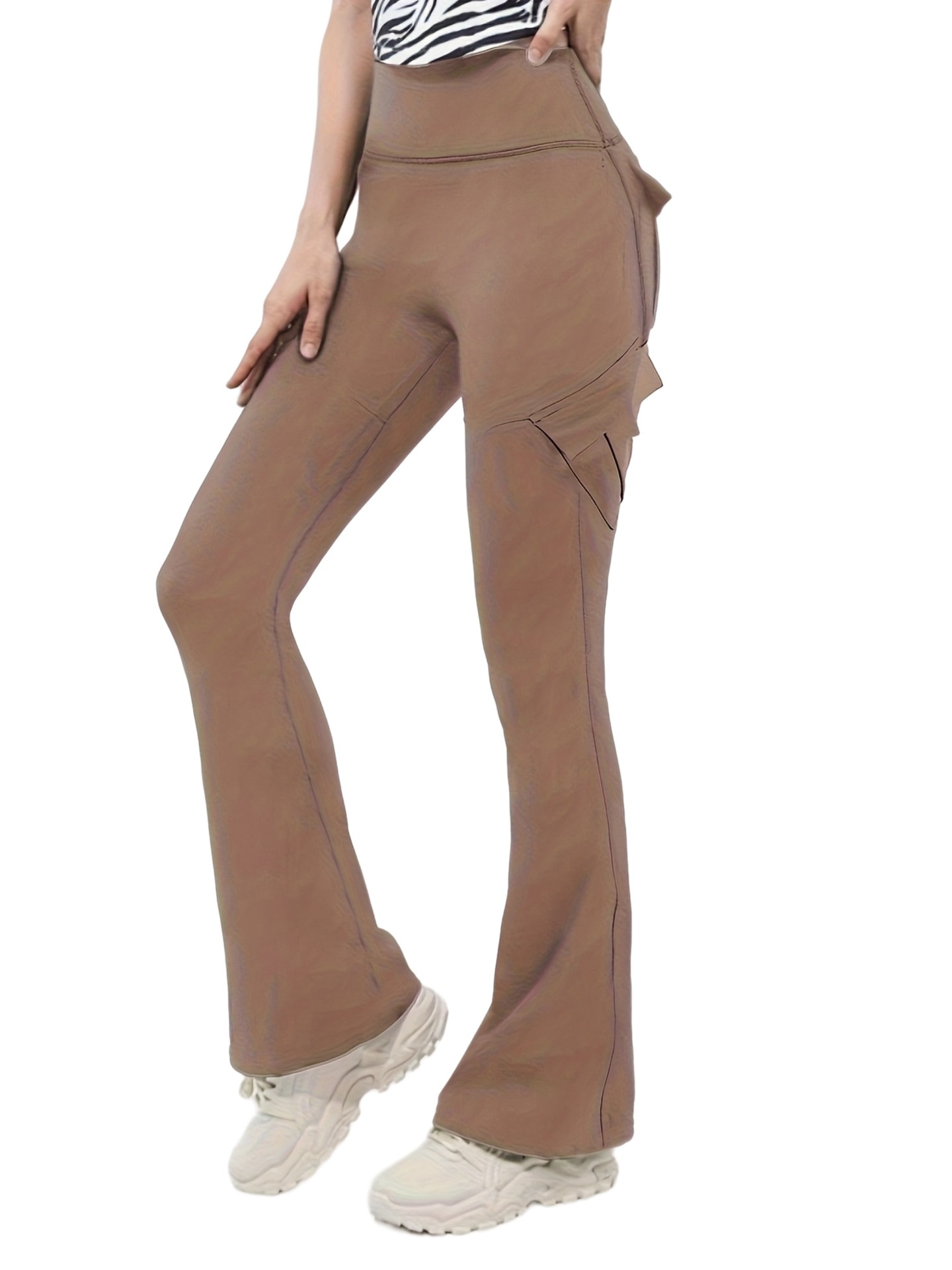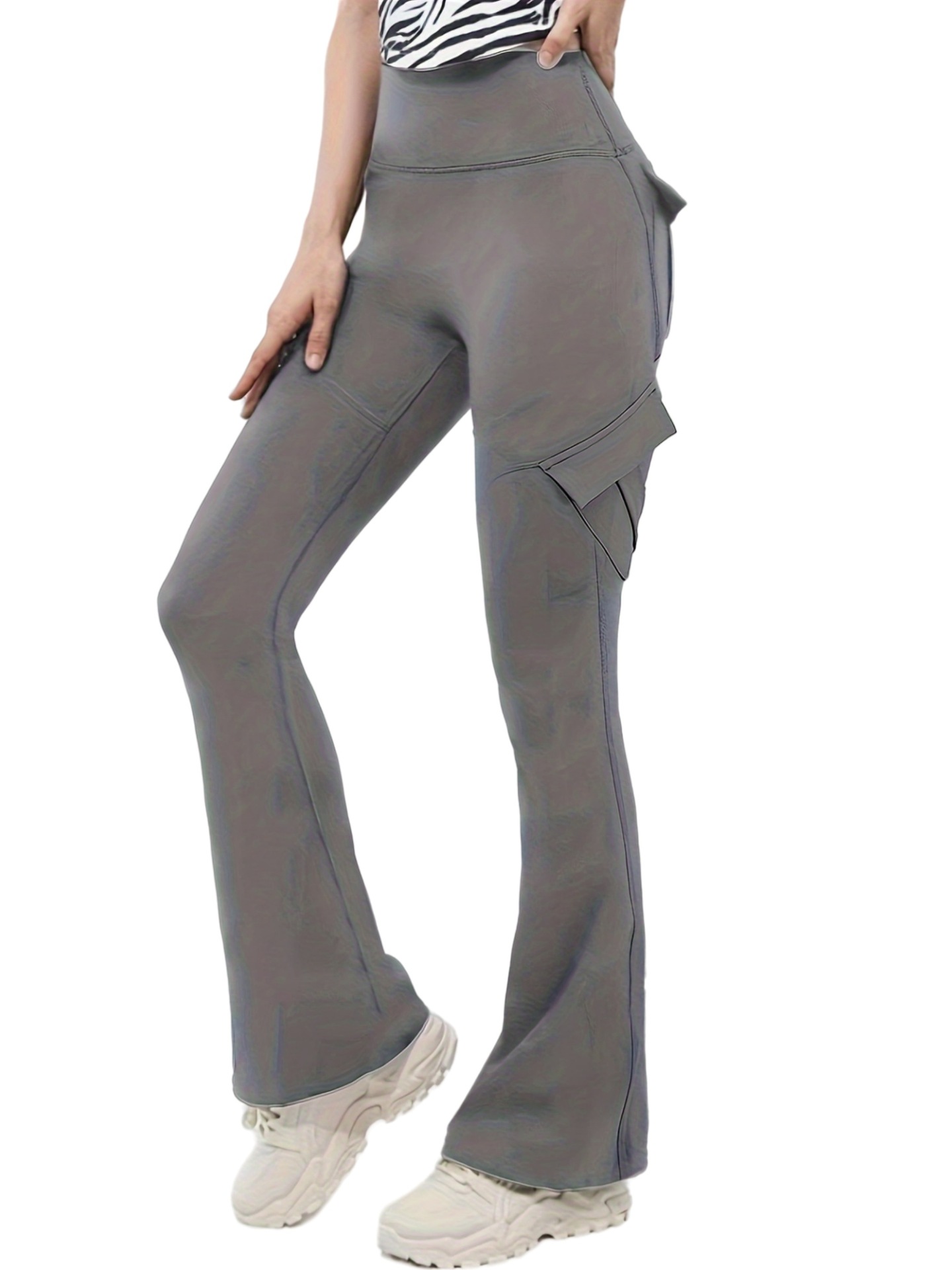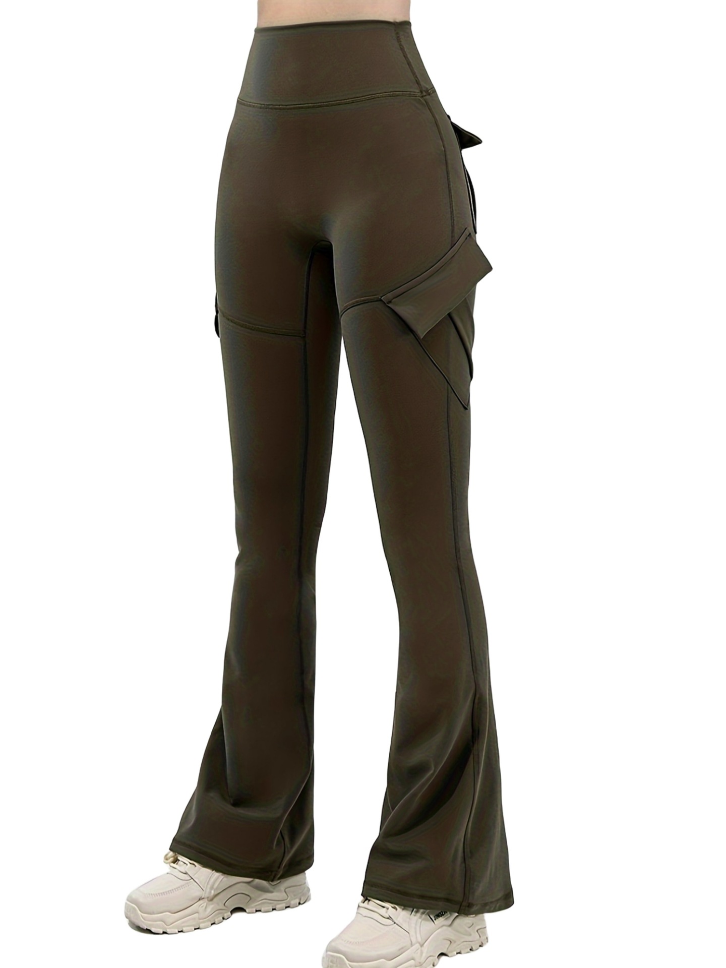 欧美跨境工装口袋喇叭裤蜜桃提臀紧身速干休闲运动健身瑜伽长裤女