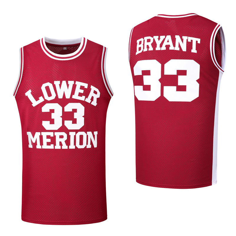 バスケットボール服コービー大学33 # 刺繍バスケットボールユニフォーム高校版赤白レトロバスケットボールユニフォーム