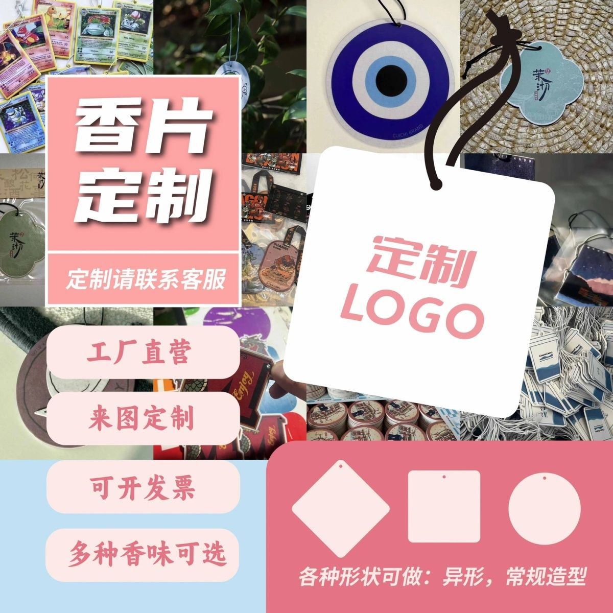 车载香片定制异形除味留香片家居衣柜持久留香扩香片吊卡桂花咖啡